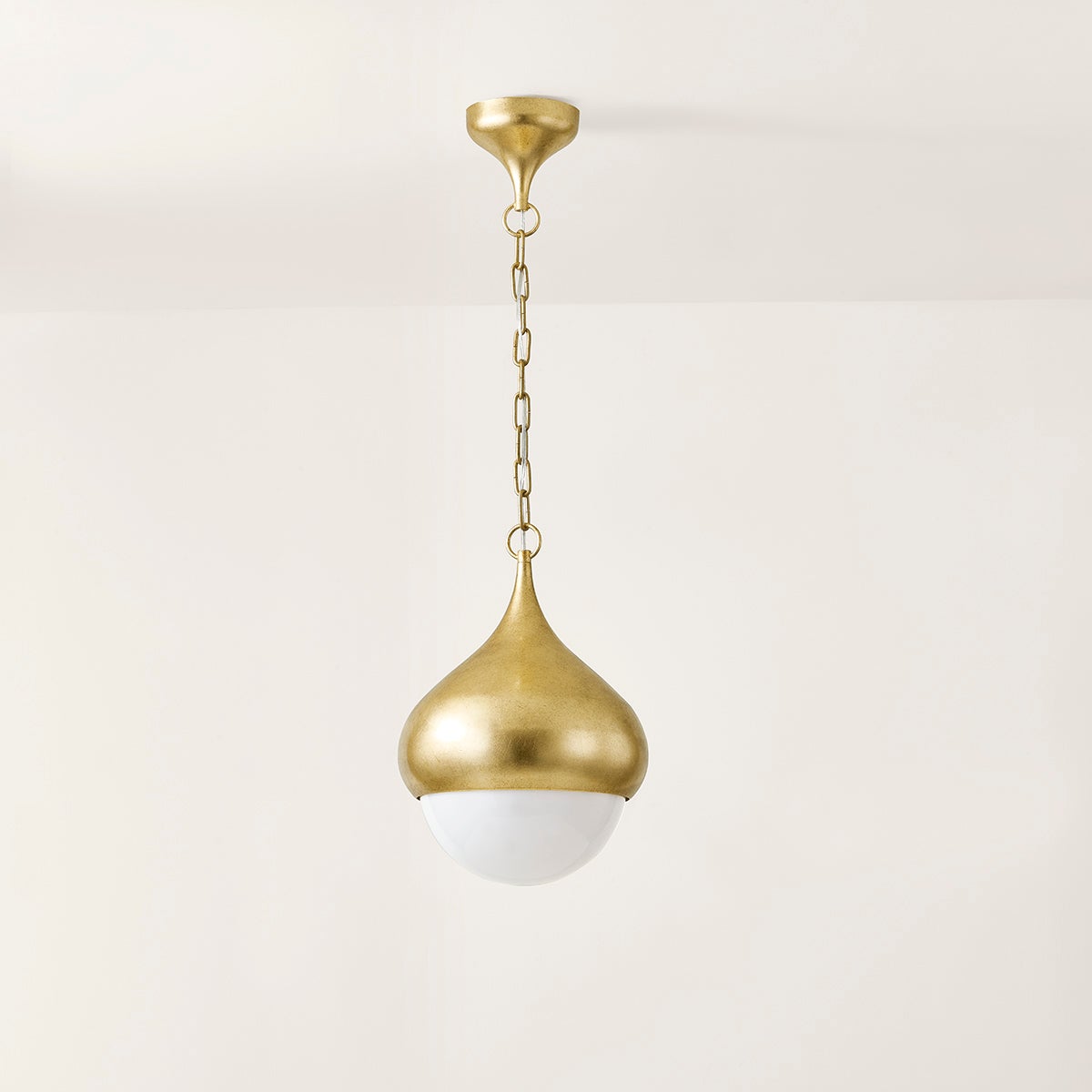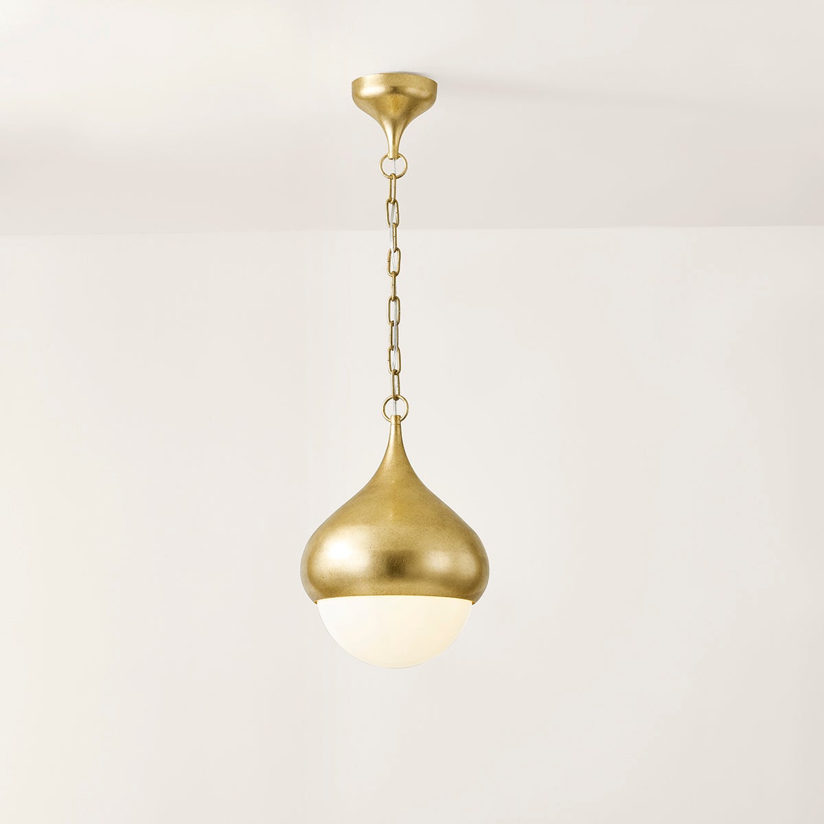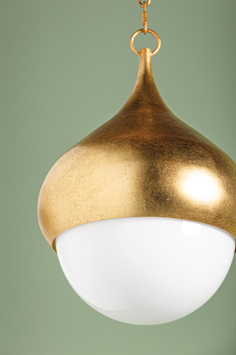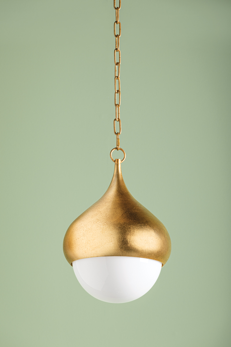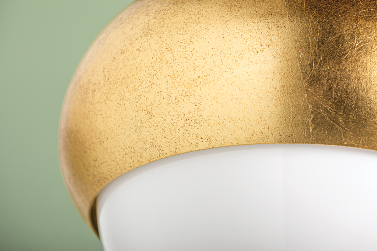 Inspired by an acorn growing on a branch, Luciel features gently curved forms, soft Opal Shiny Glass shades, and a luxurious Vintage Gold Leaf finish. The refined, jewelry-like aesthetic of the fixture is elongated to create a surreal, otherworldly representation of nature. Luciel is available as a sconce, chandelier, and pendant.