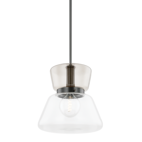 Contrasting glass shades and a sleek metal frame define the asymmetric hourglass silhouette of Elodie. This totemic pendant owes its graphic quality to the juxtaposition of clear and light bronze-plated glass forms. The choice between Aged Brass or True Bronze finishes allows you to lean into a more classic or industrial aesthetic. Whether suspended above countertops, in a living room, or at a bedside, Elodie sets the mood in style.
