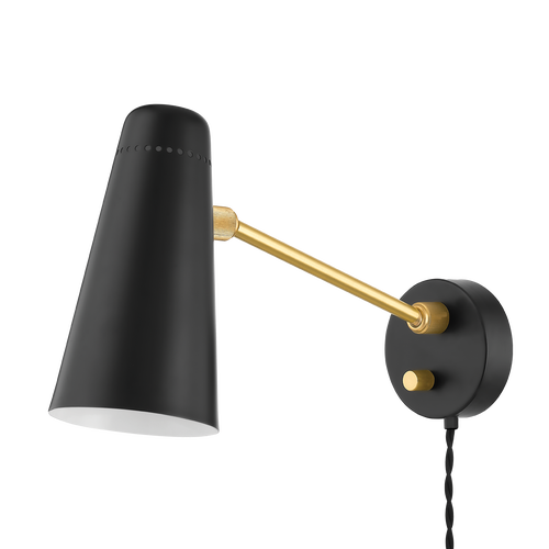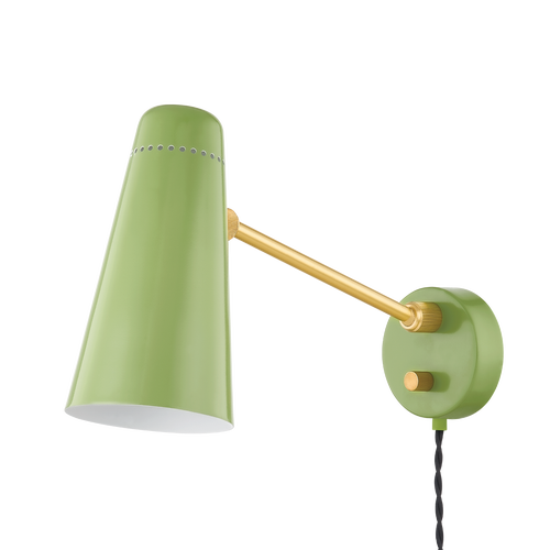 Mid-century references inspired the Alex Wall Sconce, revitalizing a historic design for the modern age. The combination of aged brass and soft green, white, or black finish is simply sublime. From the perforated shade to the etched joints, no detail was overlooked. The plug-in design is completely hassle-free, allowing you to plug into an existing outlet vs. hardwiring.