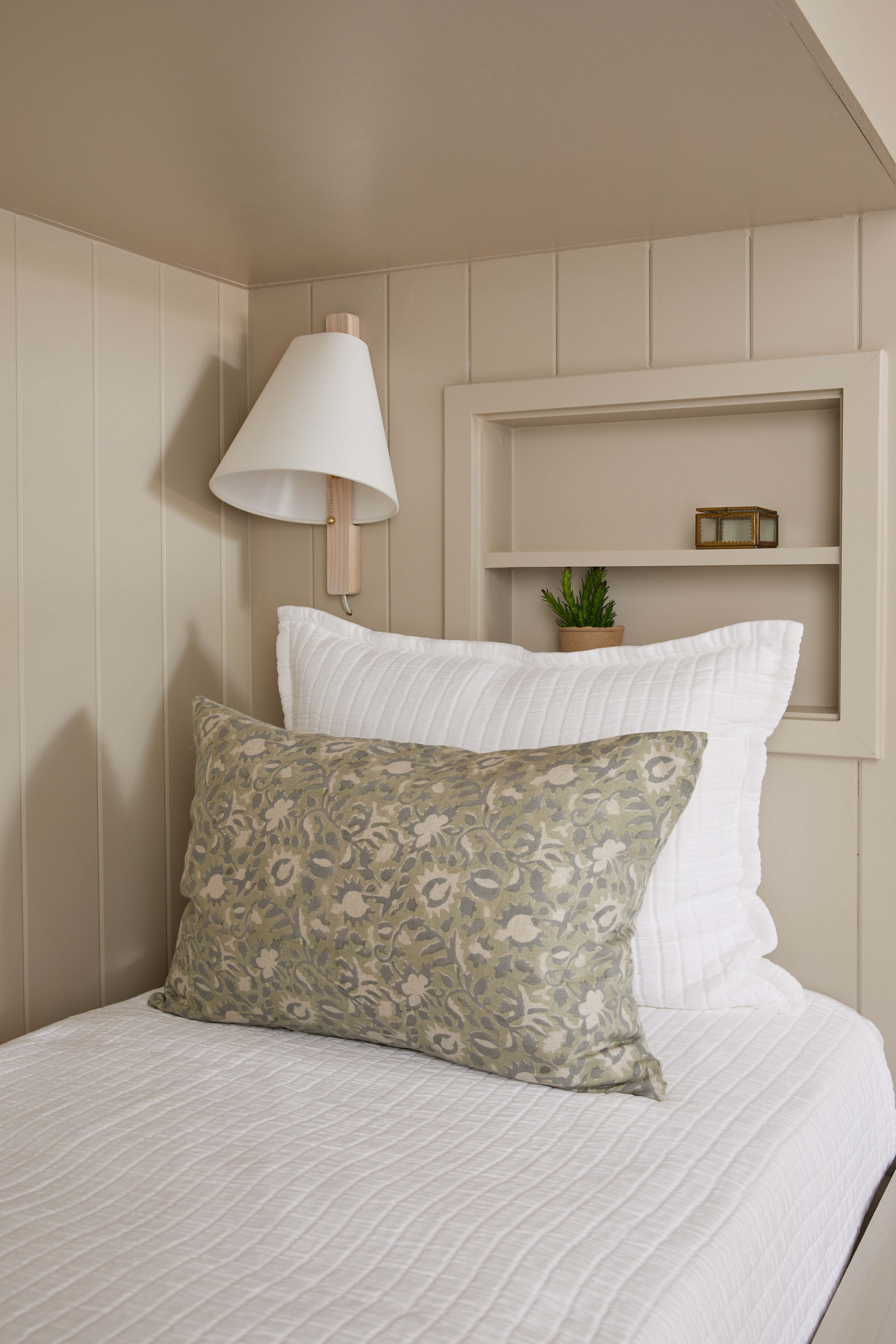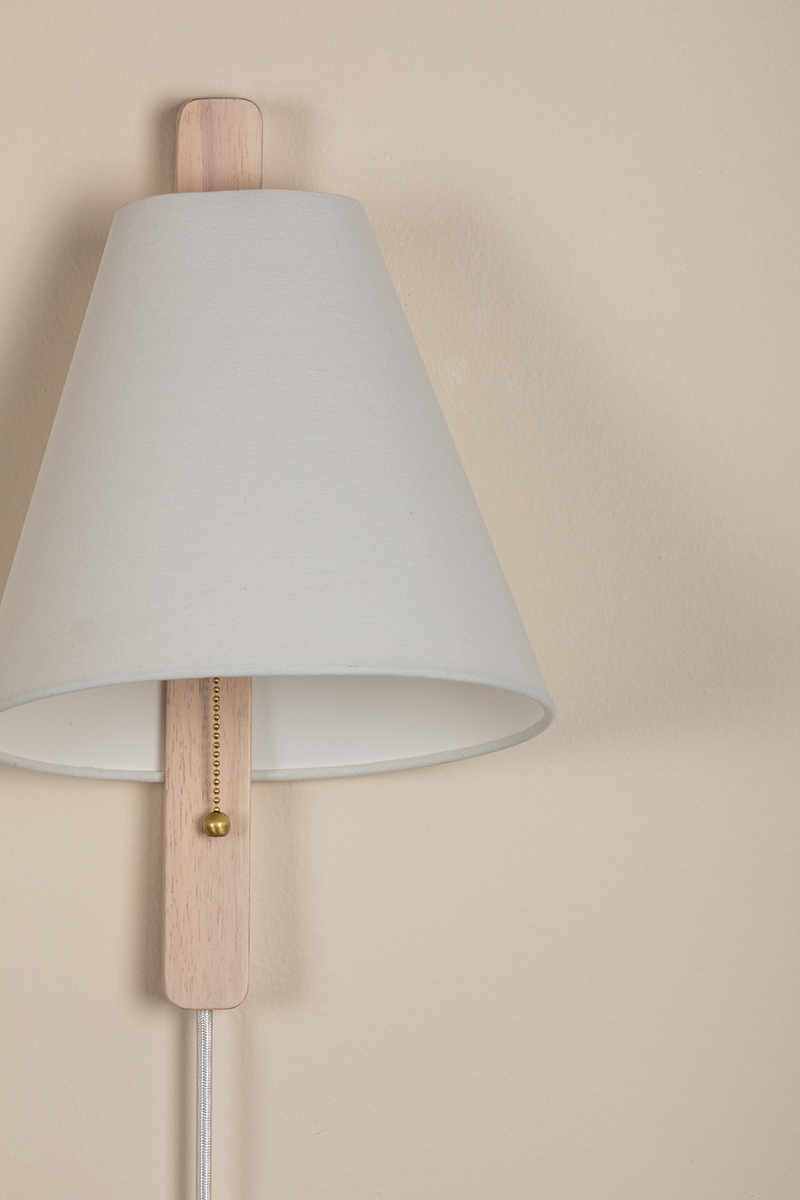 Ellen is fresh, fun and functional. A recognizable shade silhouette in linen is set slightly pitched, drawing the eye while keeping things minimal. A soft-edged wooden strip in whitewash or charred ash pierces the linen shade and brings a natural element to this portable sconce. The pretty pull-chain is both useful and decorative.