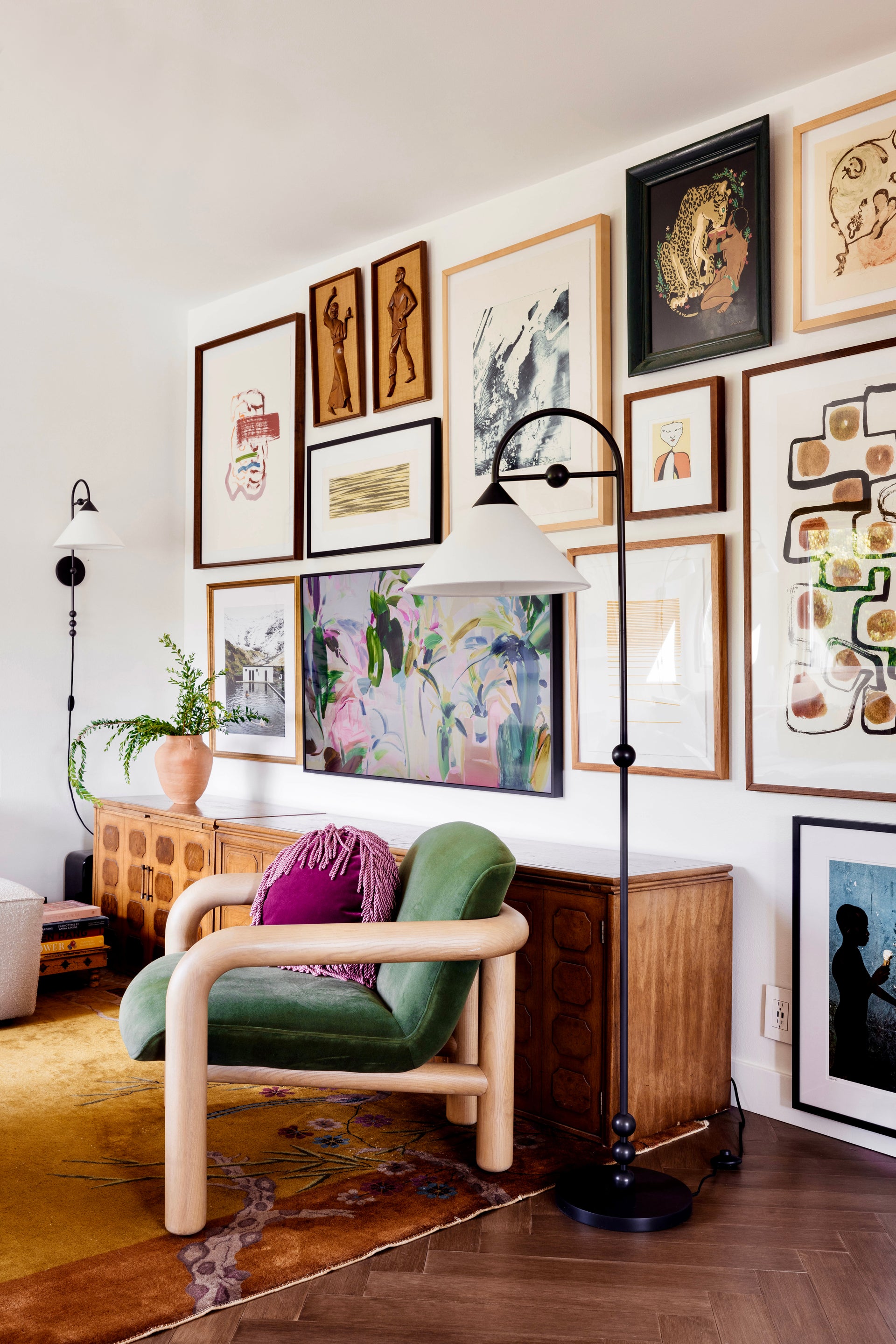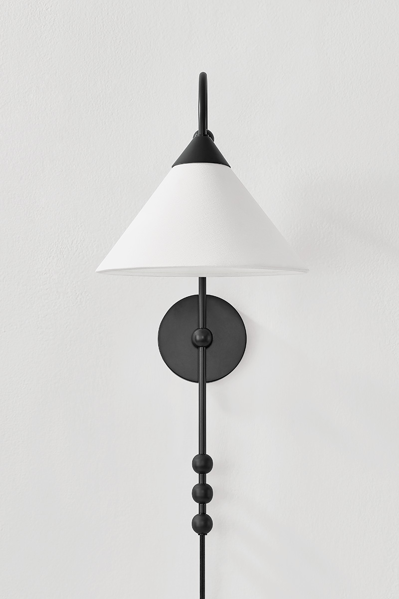 Sang is jewelry-inspired lighting at its finest. Ornamental spheres give the geometric, clean silhouette a decorative flourish. Finished in Aged Brass or Old Bronze with a white linen shade, Sang recalls a bold drop-earring. Available as a pendant, plug-in wall sconce, or floor lamp, there's a Sang to accessorize every room. Part of our Dabito x Mitzi Tastemakers collection.