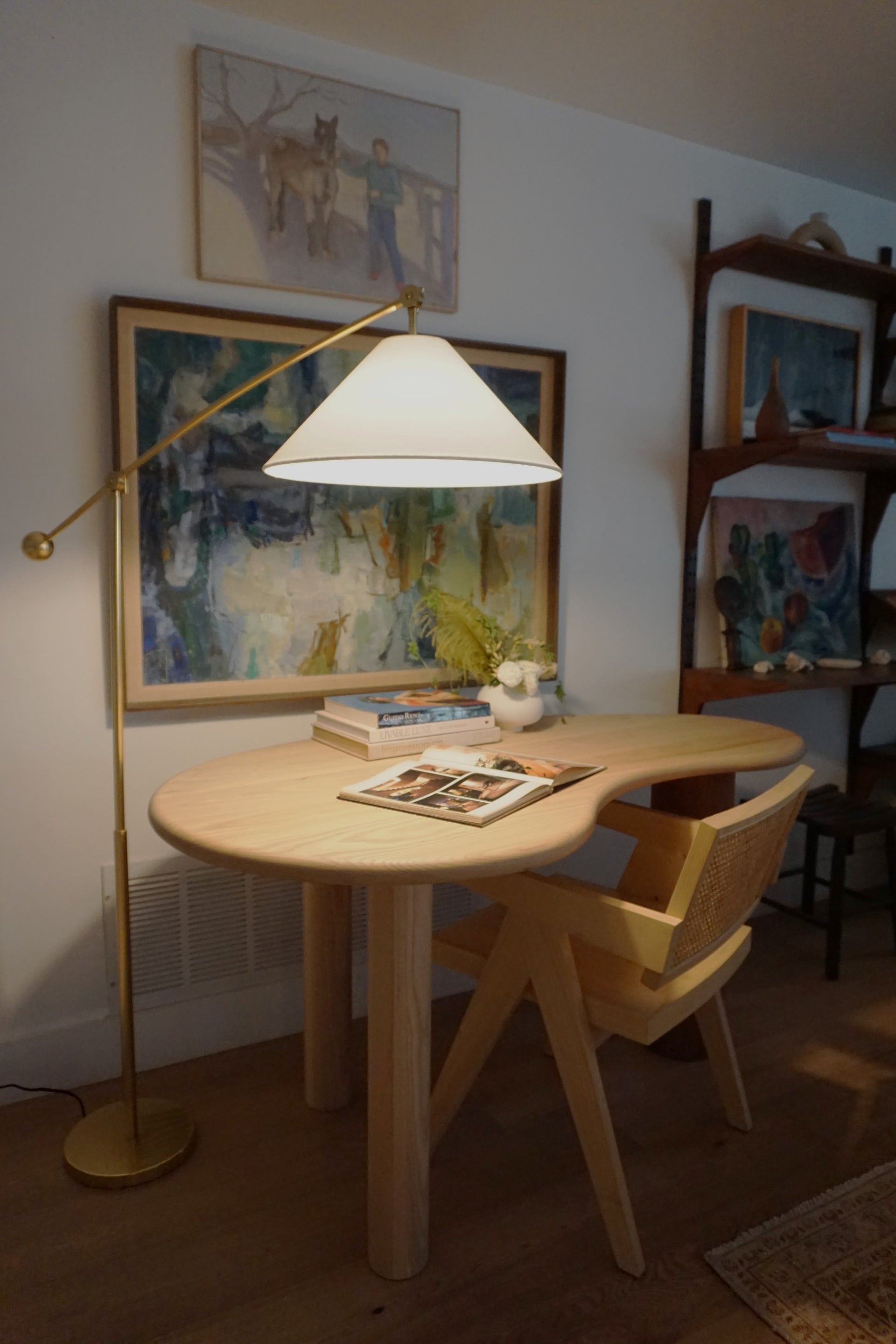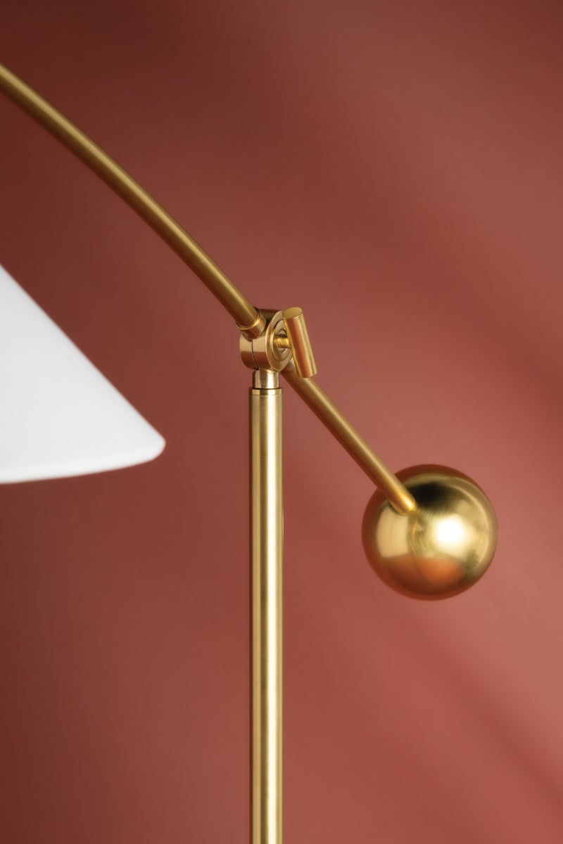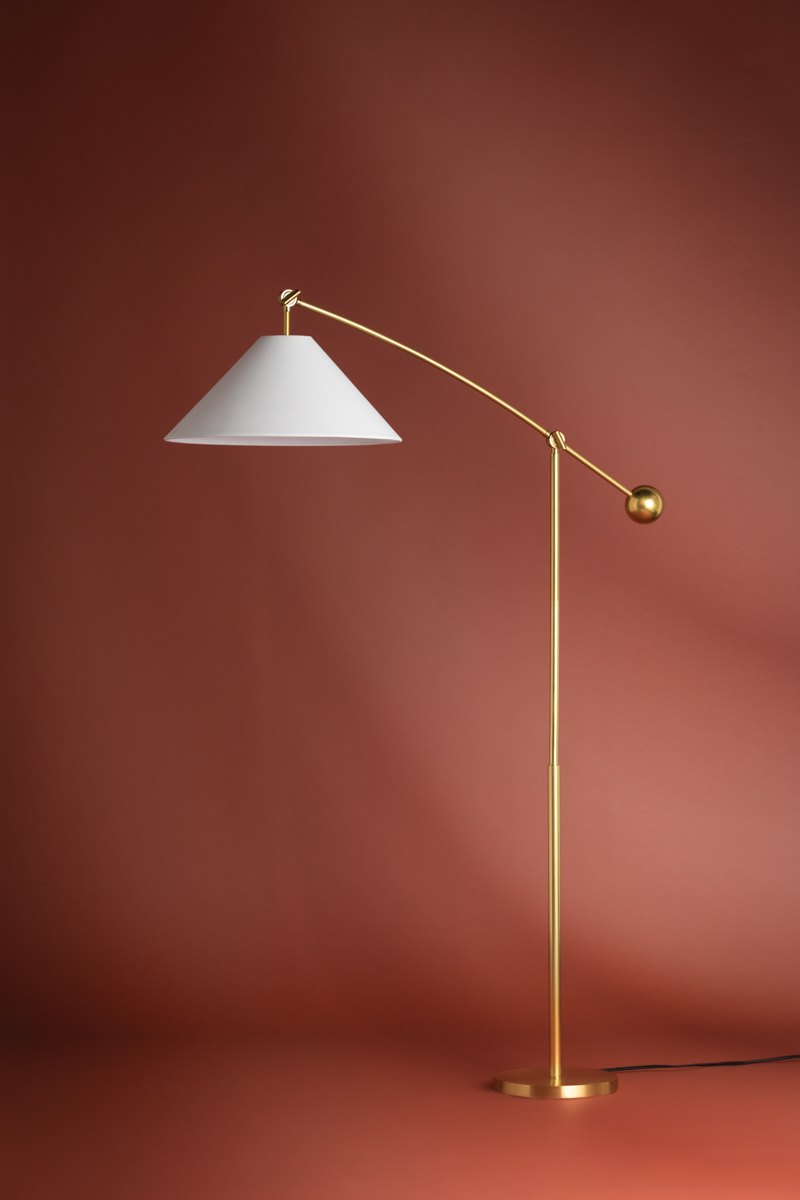 Birdie's design is beautifully balanced with thoughtful asymmetries. A small metal sphere on one end of the elongated arm offsets the white linen shade on the other. Playing with both height and angles, the pivoting arm supports a large range of motion, allowing you to direct light where needed. Birdie is available as a floor lamp or chandelier. Part of our Tali Roth x Mitzi Tastemakers collection.