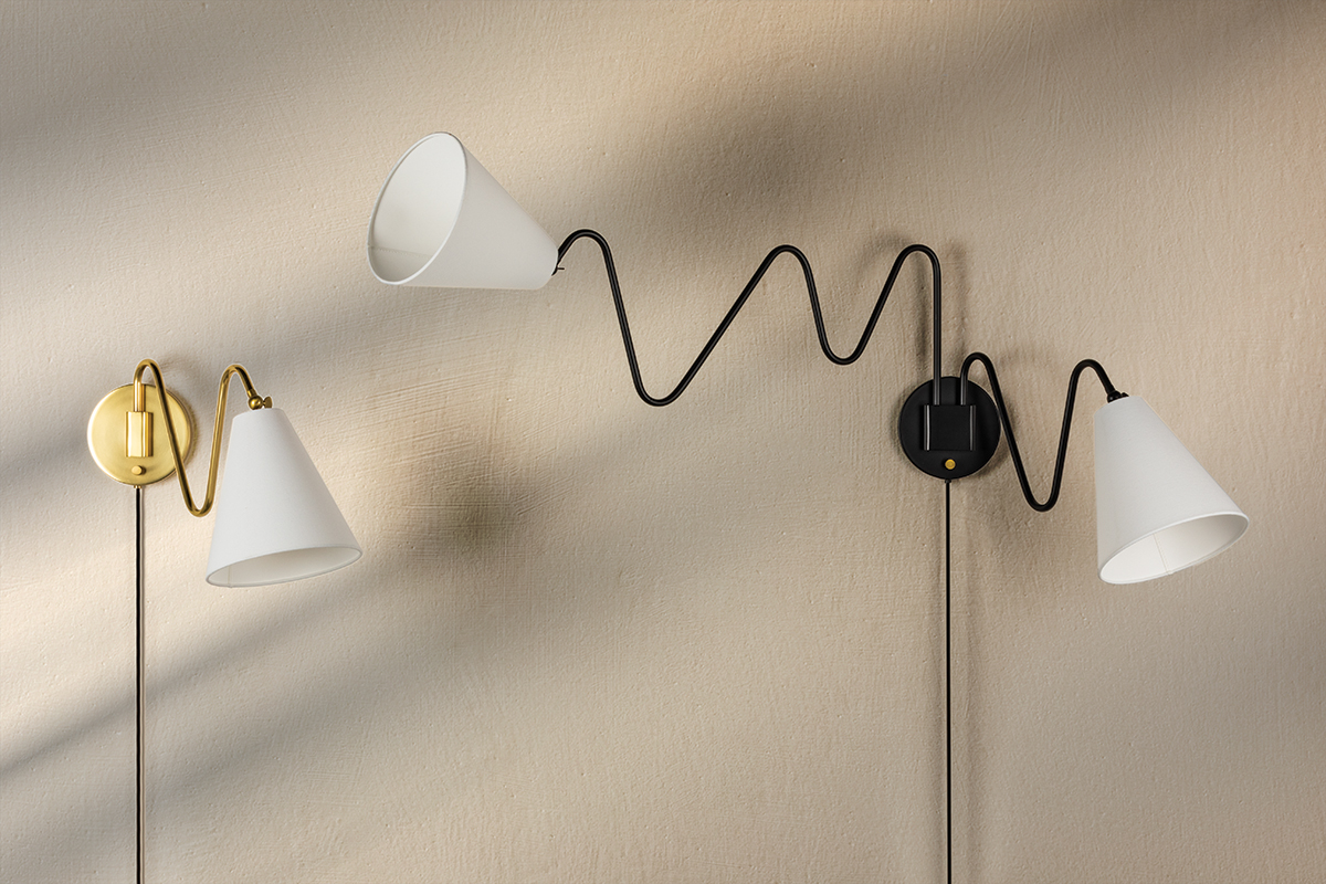 Squiggly arms reminiscent of freehand doodles are Onda’s main draw. A sense of movement is implied, reinforced by the fact that the shades pivot. The fresh white linen gently diffuses light, casting a warm glow from counter to corner. Onda is available as a 3 or 5-light chandelier or 1 or 2-light plug-in sconce. Part of our Tali Roth x Mitzi Tastemakers collection.