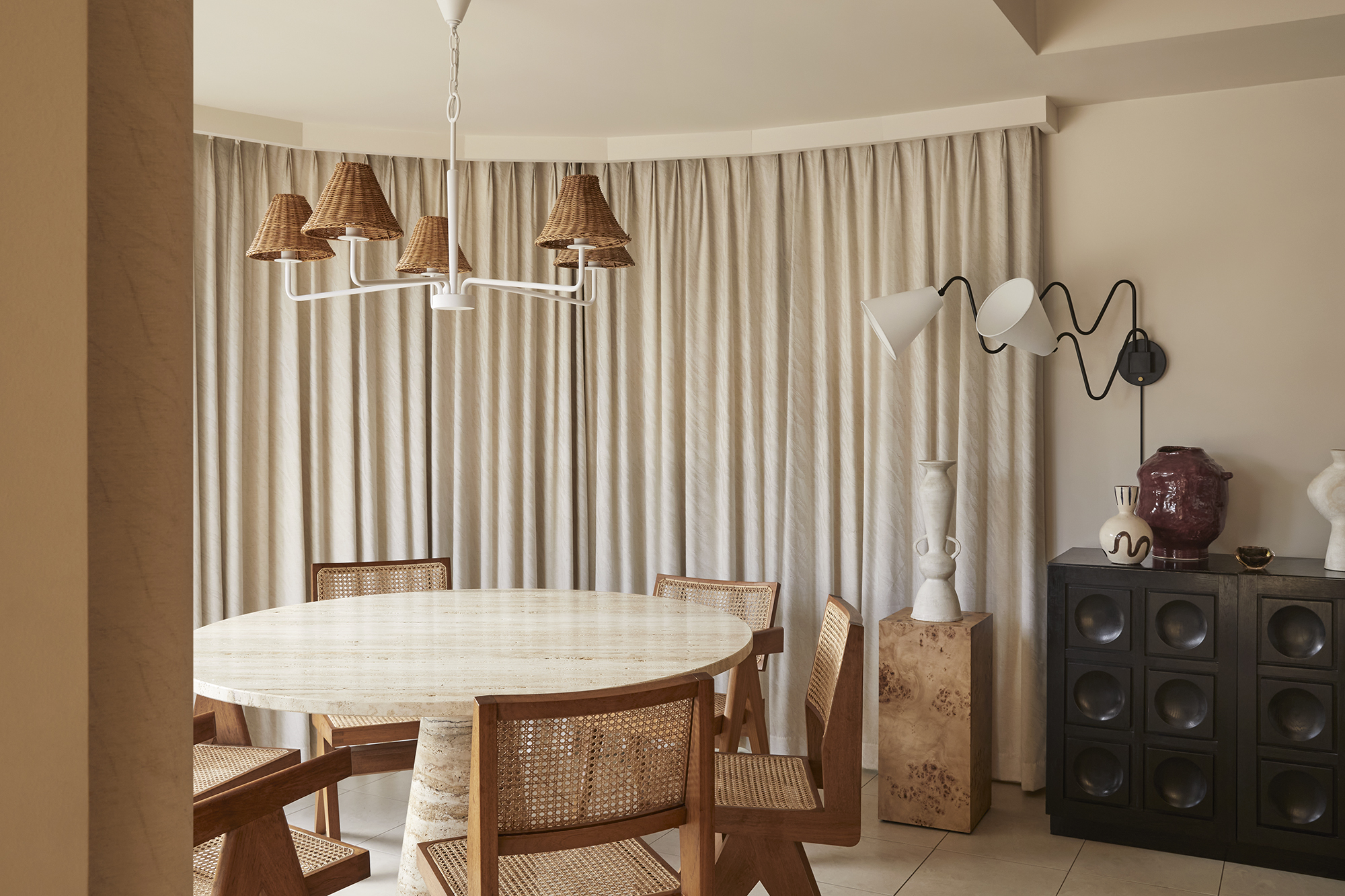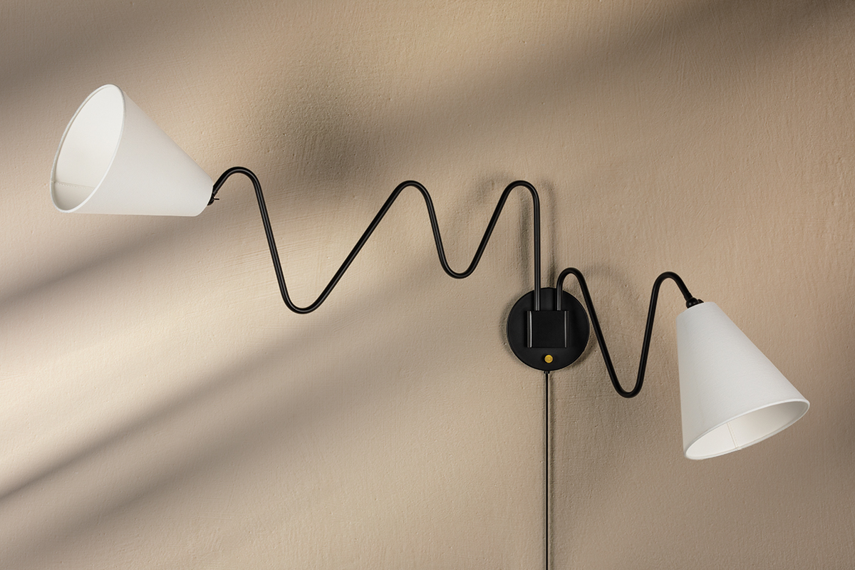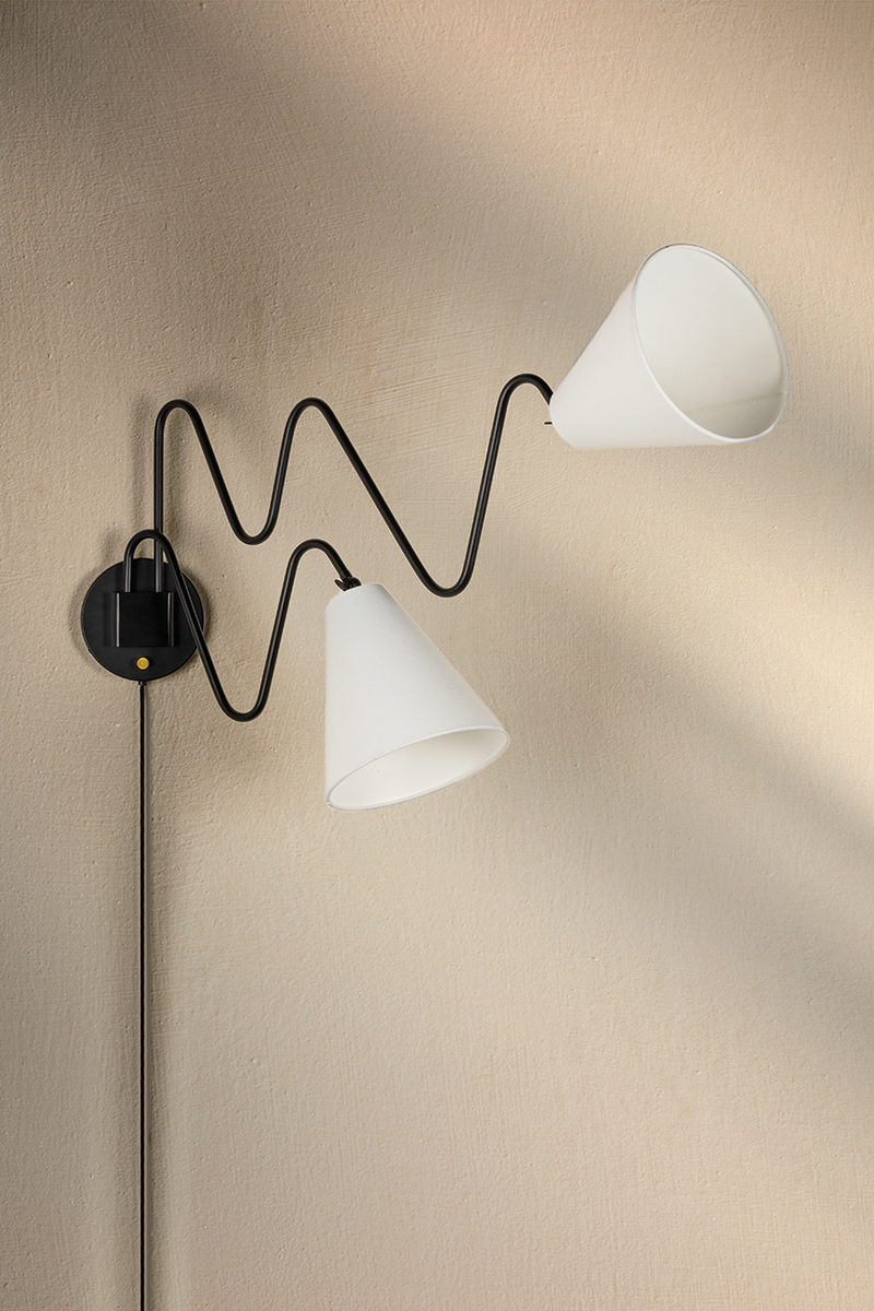 Squiggly arms reminiscent of freehand doodles are Onda’s main draw. A sense of movement is implied, reinforced by the fact that the shades pivot. The fresh white linen gently diffuses light, casting a warm glow from counter to corner. Onda is available as a 3 or 5-light chandelier or 1 or 2-light plug-in sconce. Part of our Tali Roth x Mitzi Tastemakers collection.