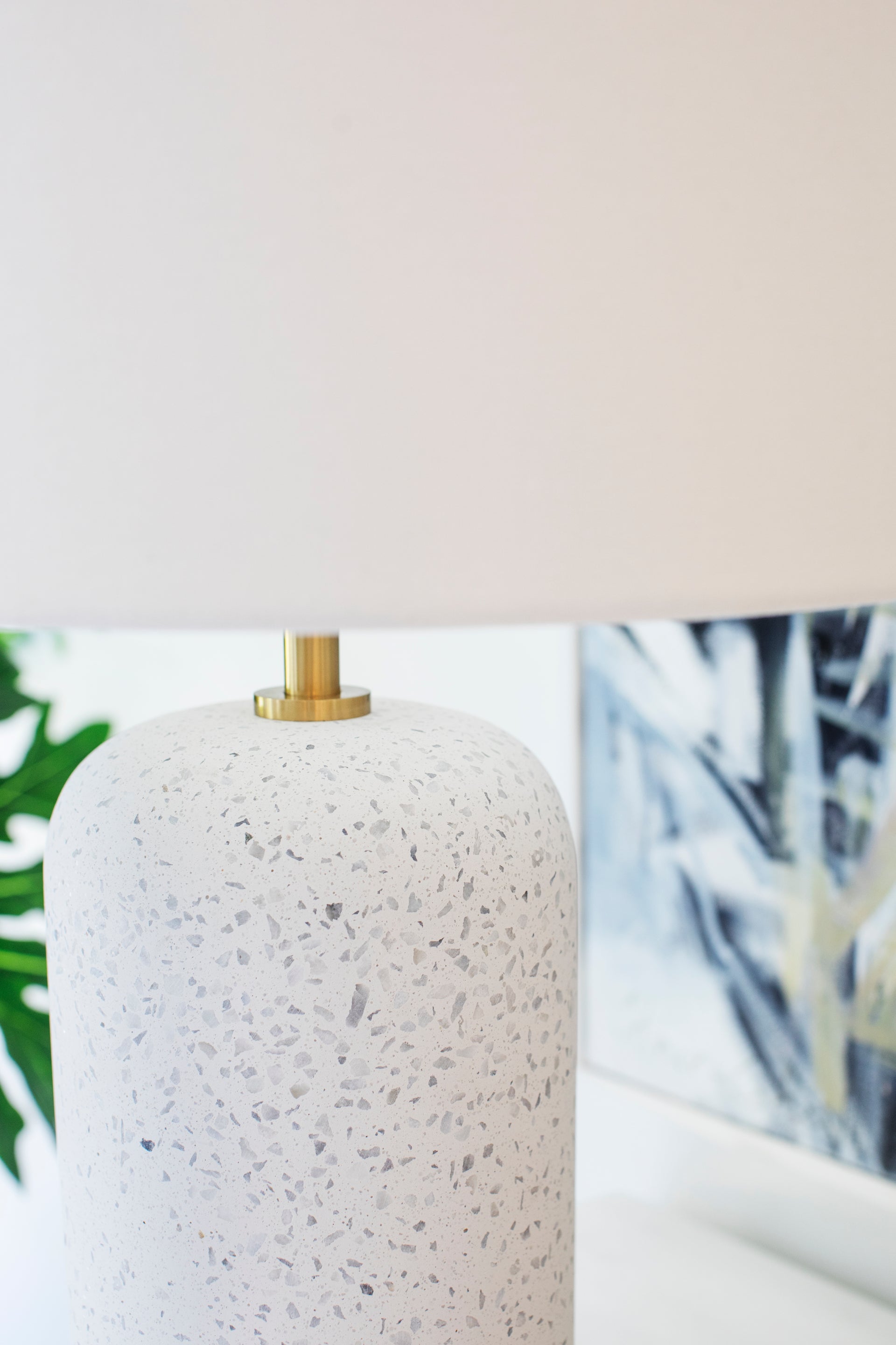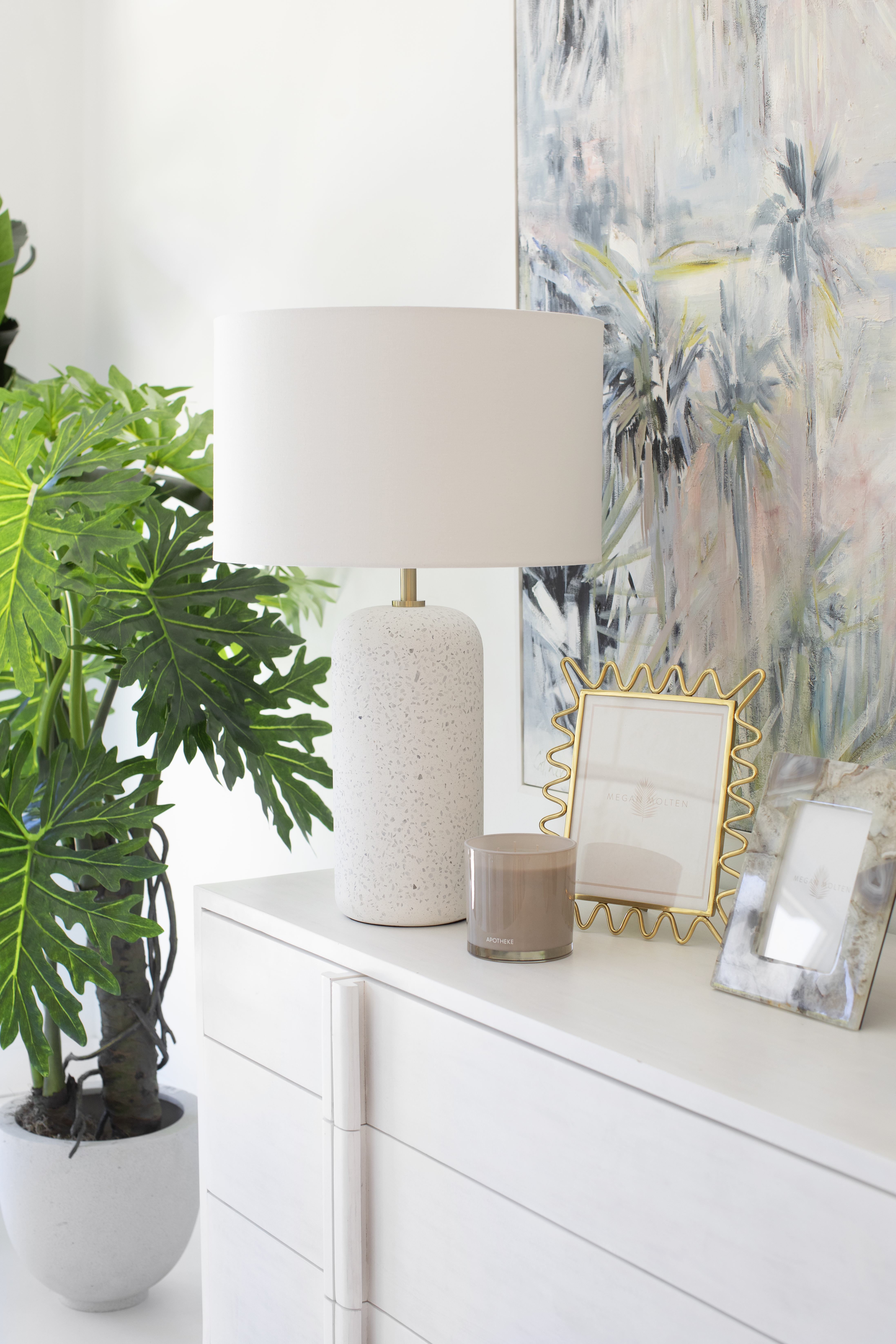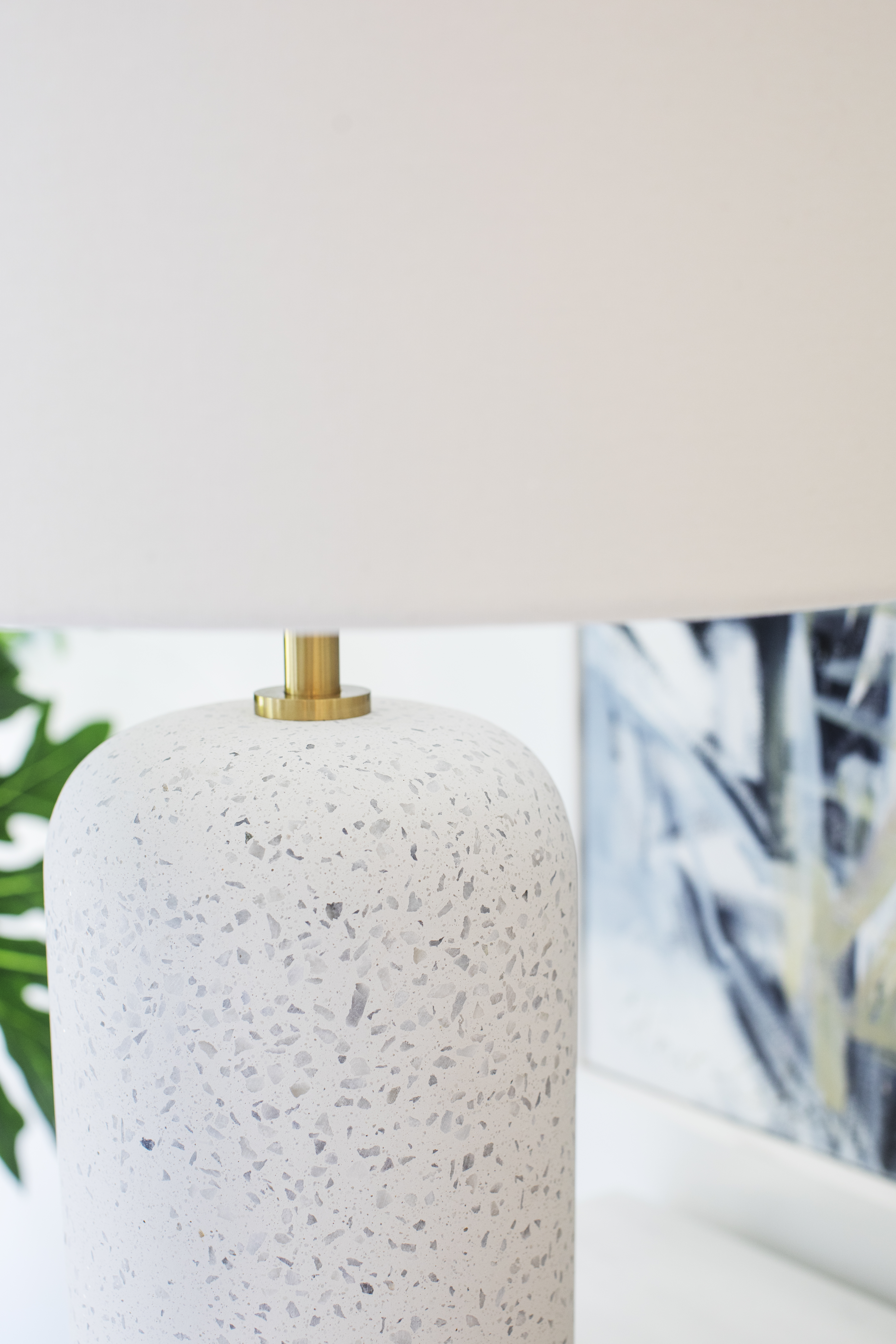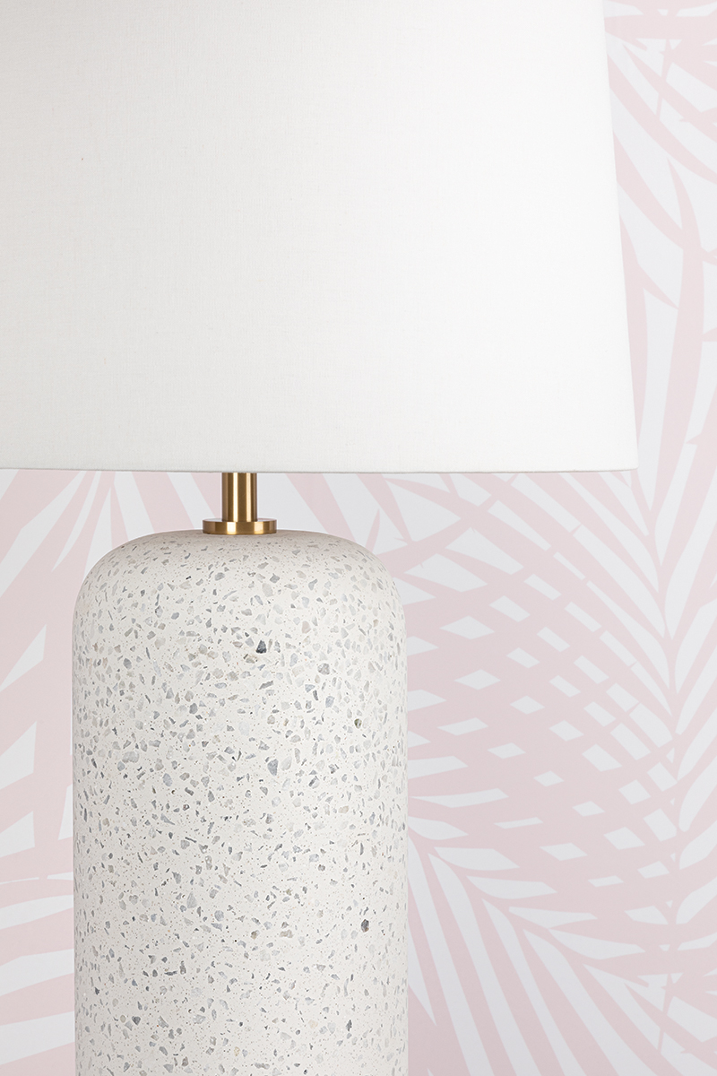 A casual blue-grey terrazzo gives Margaret a natural texture and hints of Megan Molten’s signature color, while elegant Aged Brass details add to the collection’s versatility. Table lamps offer a welcoming glow when styled on an entryway console, while a pair of sconces complement the beauty of your favorite art piece. Part of our Megan Molten x Mitzi Tastemakers collection.