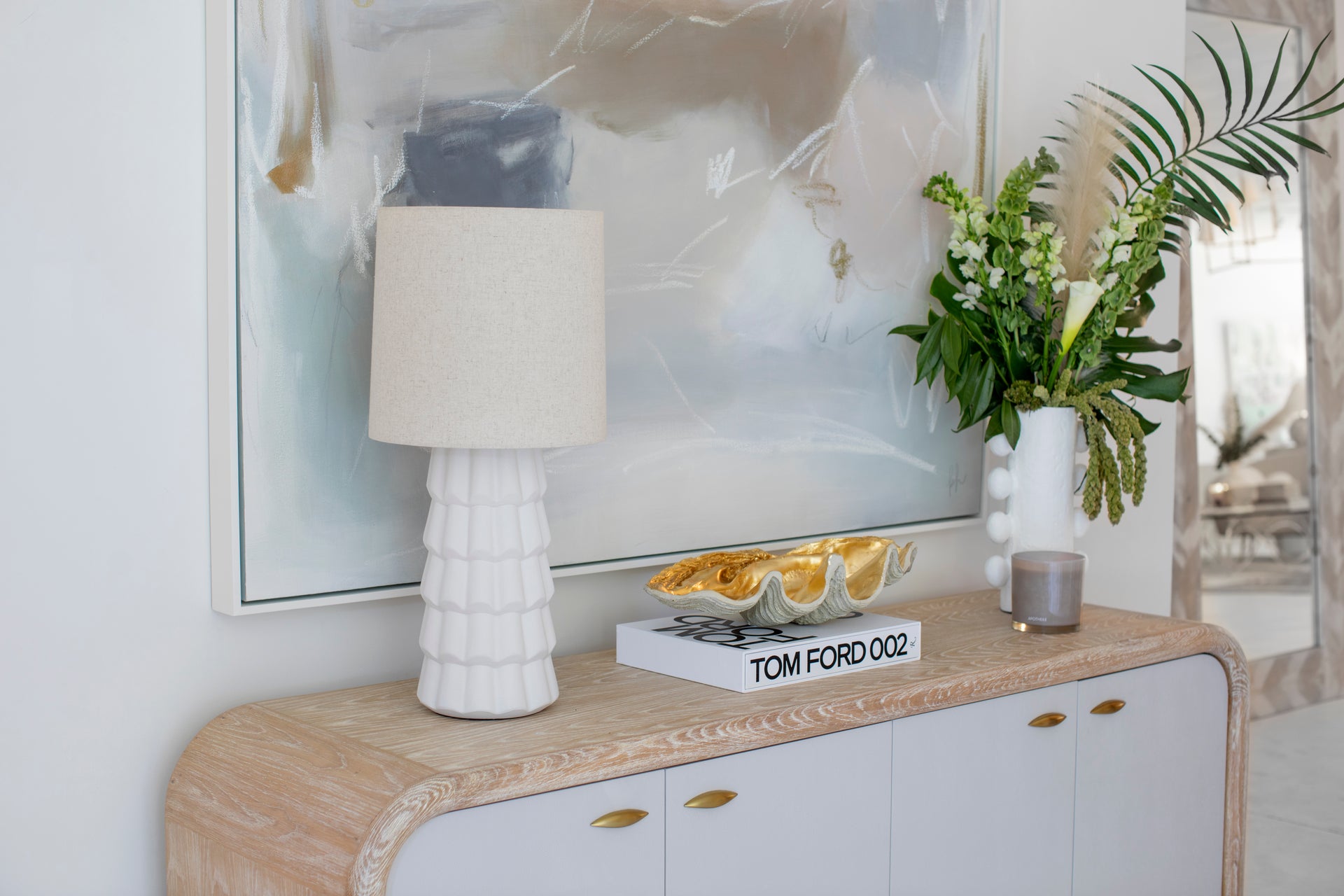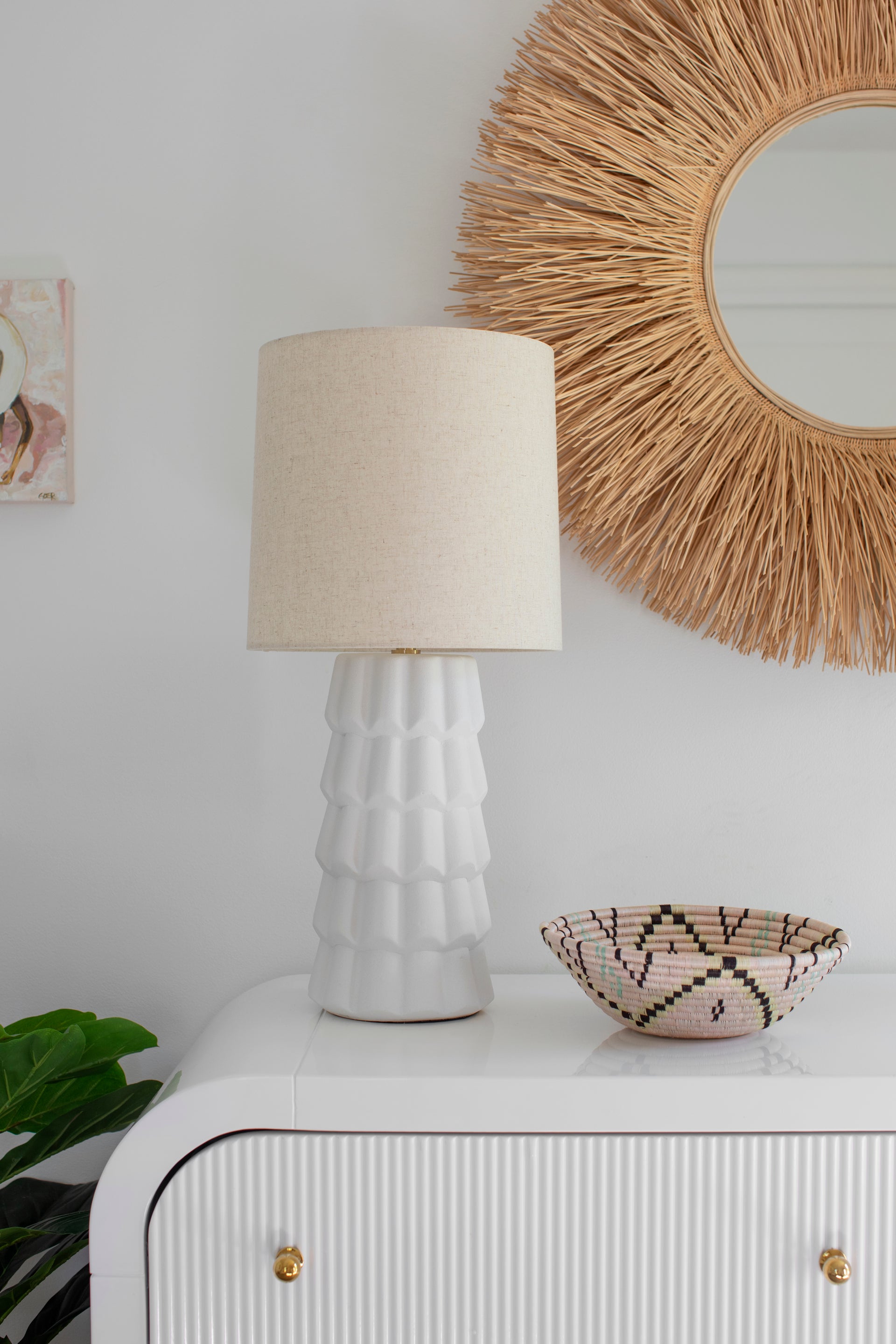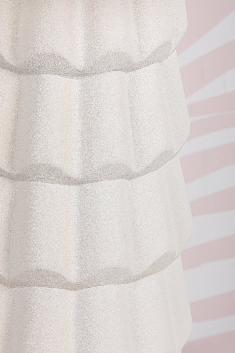 Fashionable and feminine, Maisie’s textured white ceramic ruffles give an organic coastal touch to this wave-inspired design. Create a beautiful yet functional dresser vignette with the table lamp, or add feminine flair to your bathroom vanity with pendants. Want in on a little secret? The pendant doubles as a semi-flush mount! Just remove the stem, and voila! A quick and easy refresh is just a twist away. Part of our Megan Molten x Mitzi Tastemakers collection.