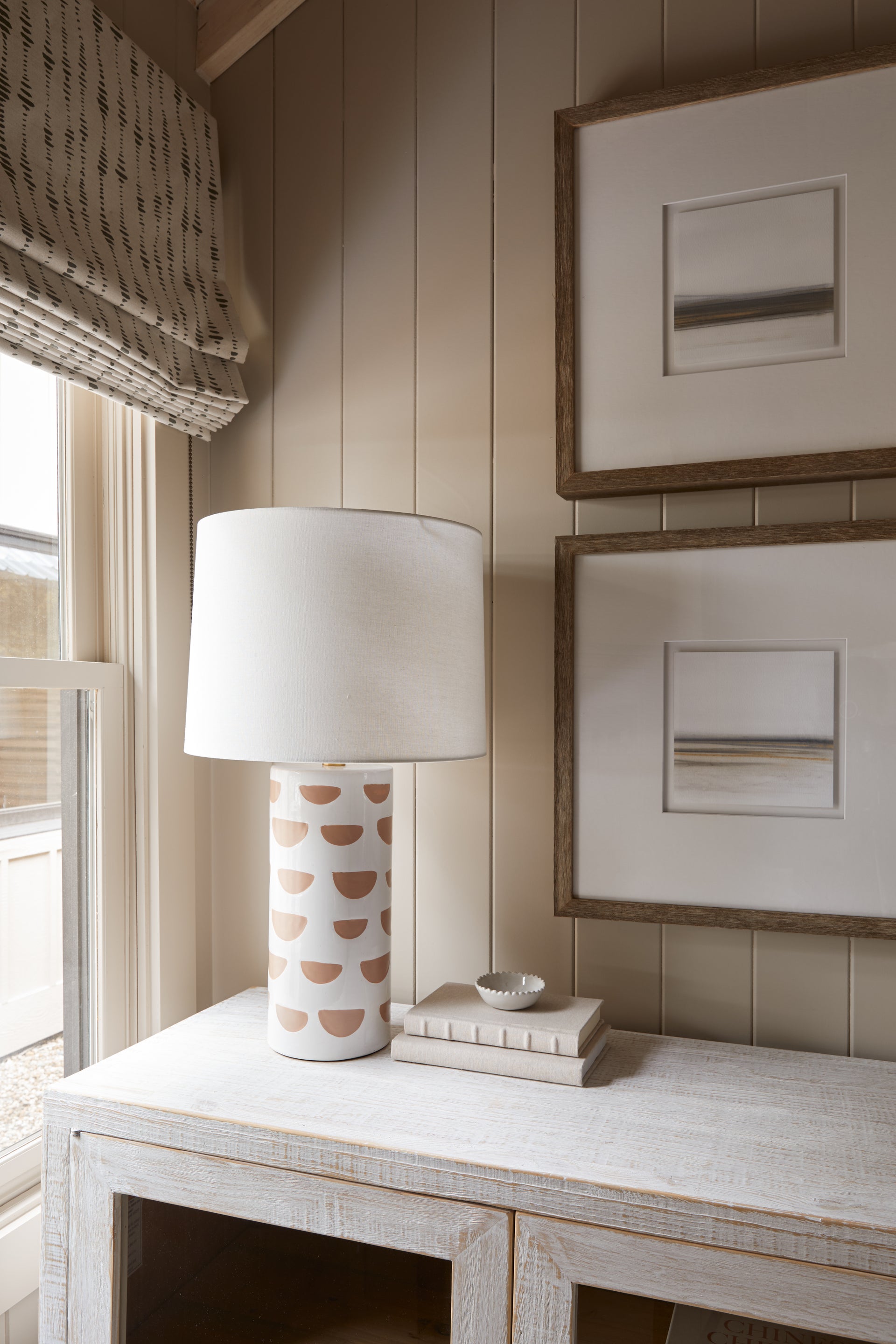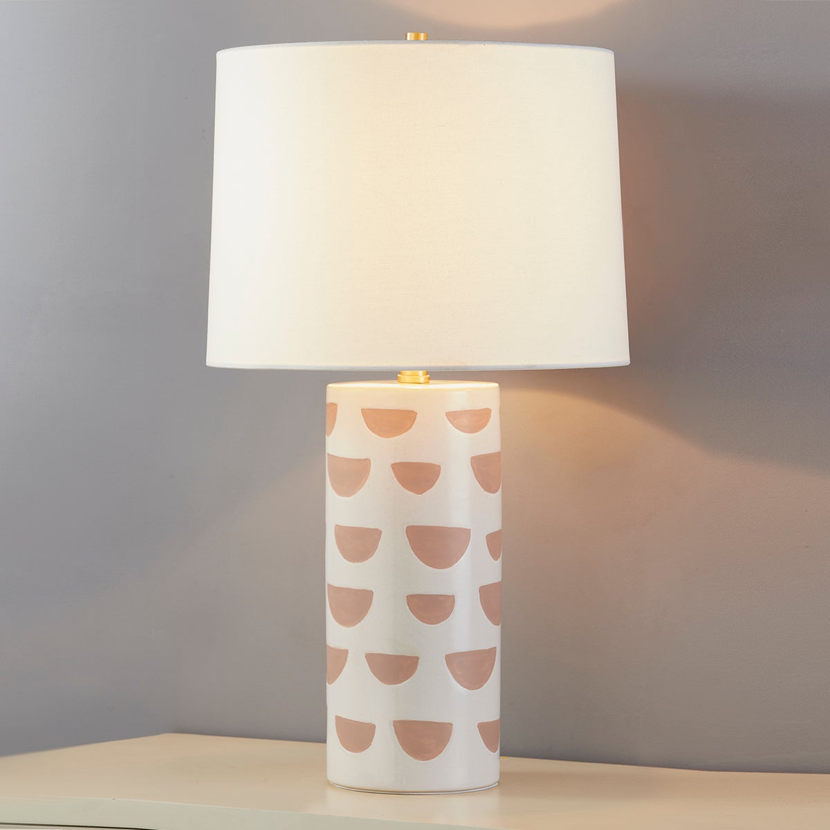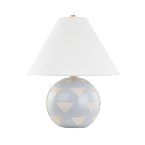 Minnie is fun and funky! These fashionable table lamps have a hand-made quality with a glossy ceramic base in satin white or slate blue and perfectly imperfect geometric patterning. Complete with a subtle accent of Aged Brass, these cuties were made to stand out on any console or surface in your home that calls for a touch of personality. Part of our Megan Molten x Mitzi Tastemakers collection.