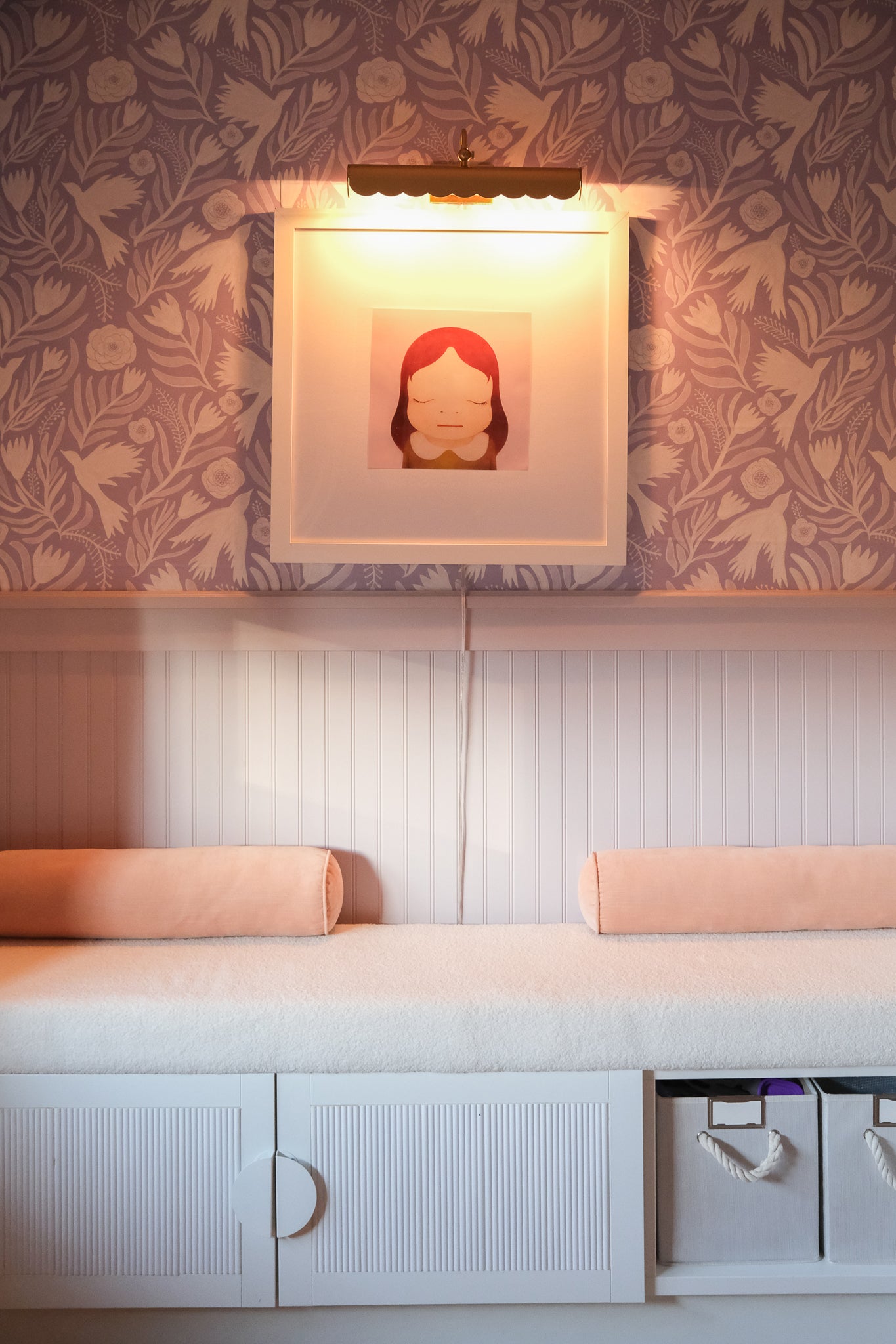 Highlight artwork, photos or other wall décor with this pretty, plug-in picture light. A new traditional take on the classic design, it features a sweet scalloped edge and curved arm that adds warmth and feels fresh. Fifi is available in three sizes and finishes; Aged Brass, Soft White, and Soft Navy to fit any space and color scheme. Part of our Ariel Okin x Mitzi Tastemakers collection.
