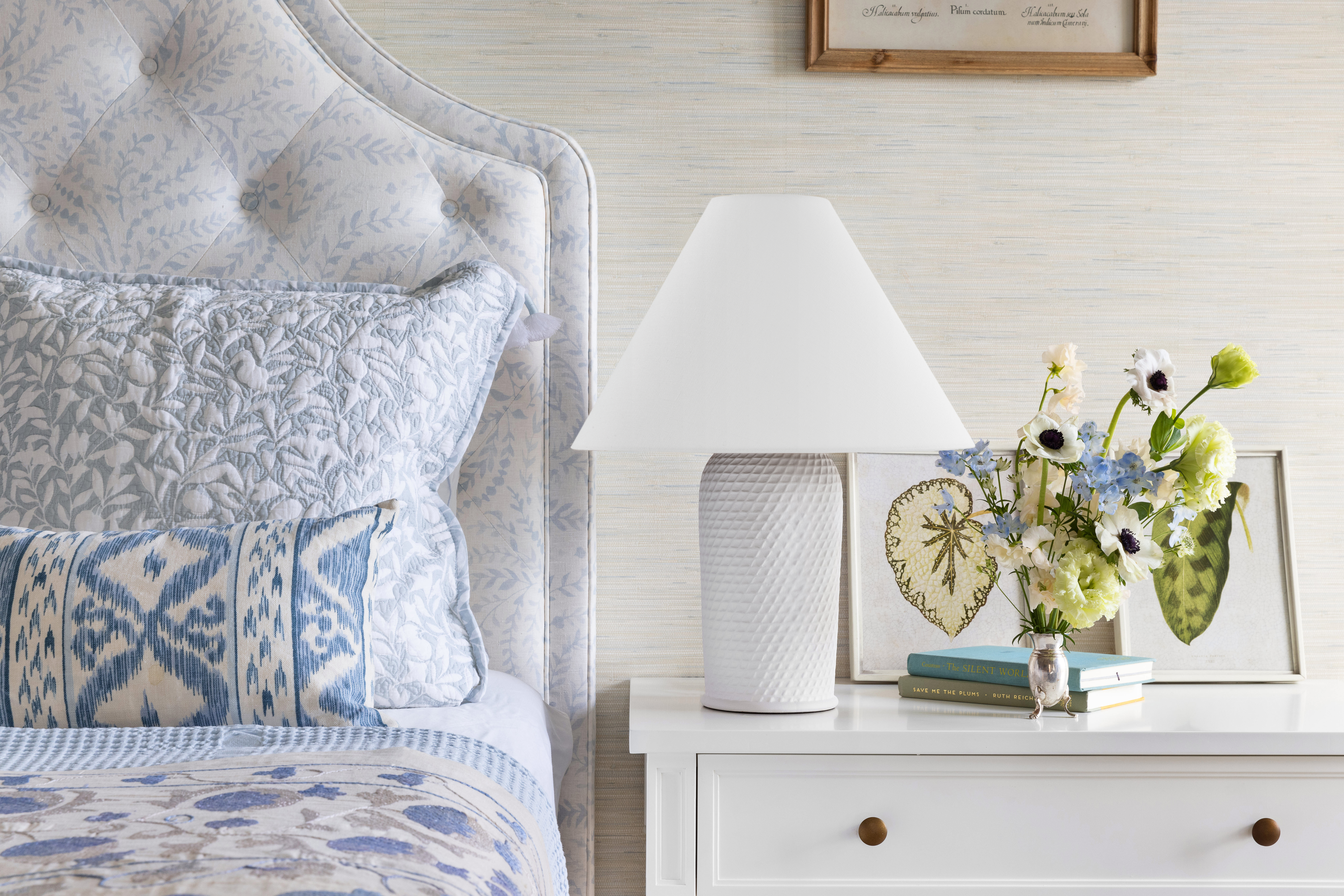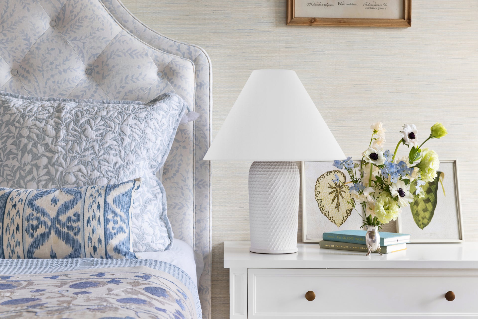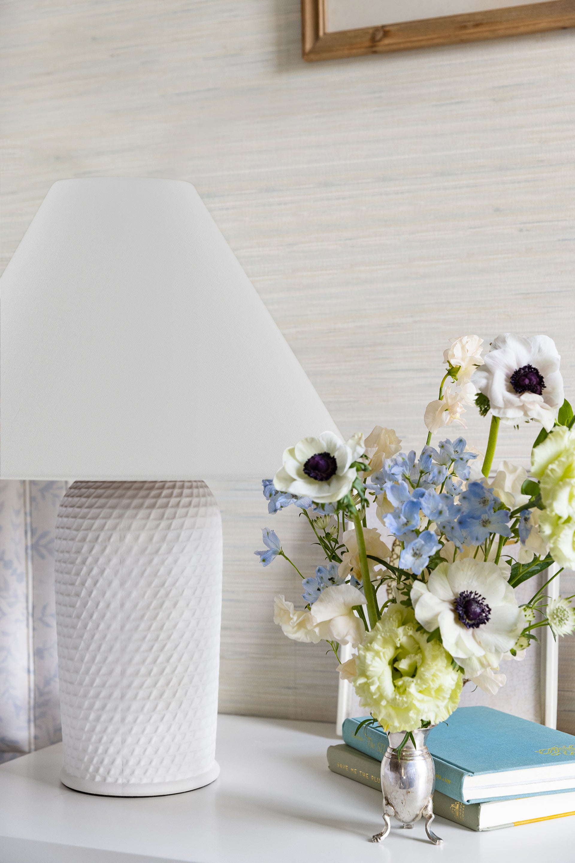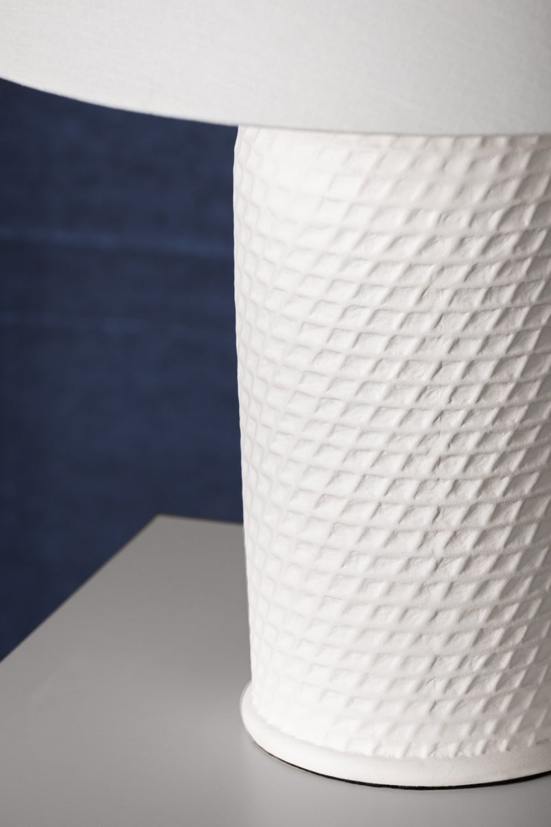 The basketweave texture and dusty ceramic finish give the Susie table lamp a incredibly versatile look. The tapered white linen shade accentuates the tailored aesthetic and classic vibe. Style this lamp on surfaces throughout the home to give any space an updated traditional feel. Part of our Ariel Okin x Mitzi Tastemakers collection.