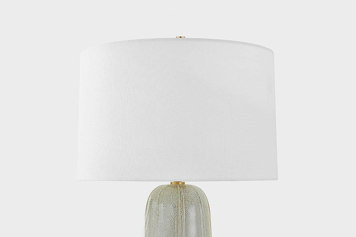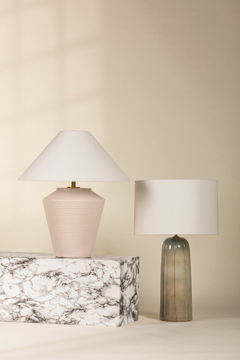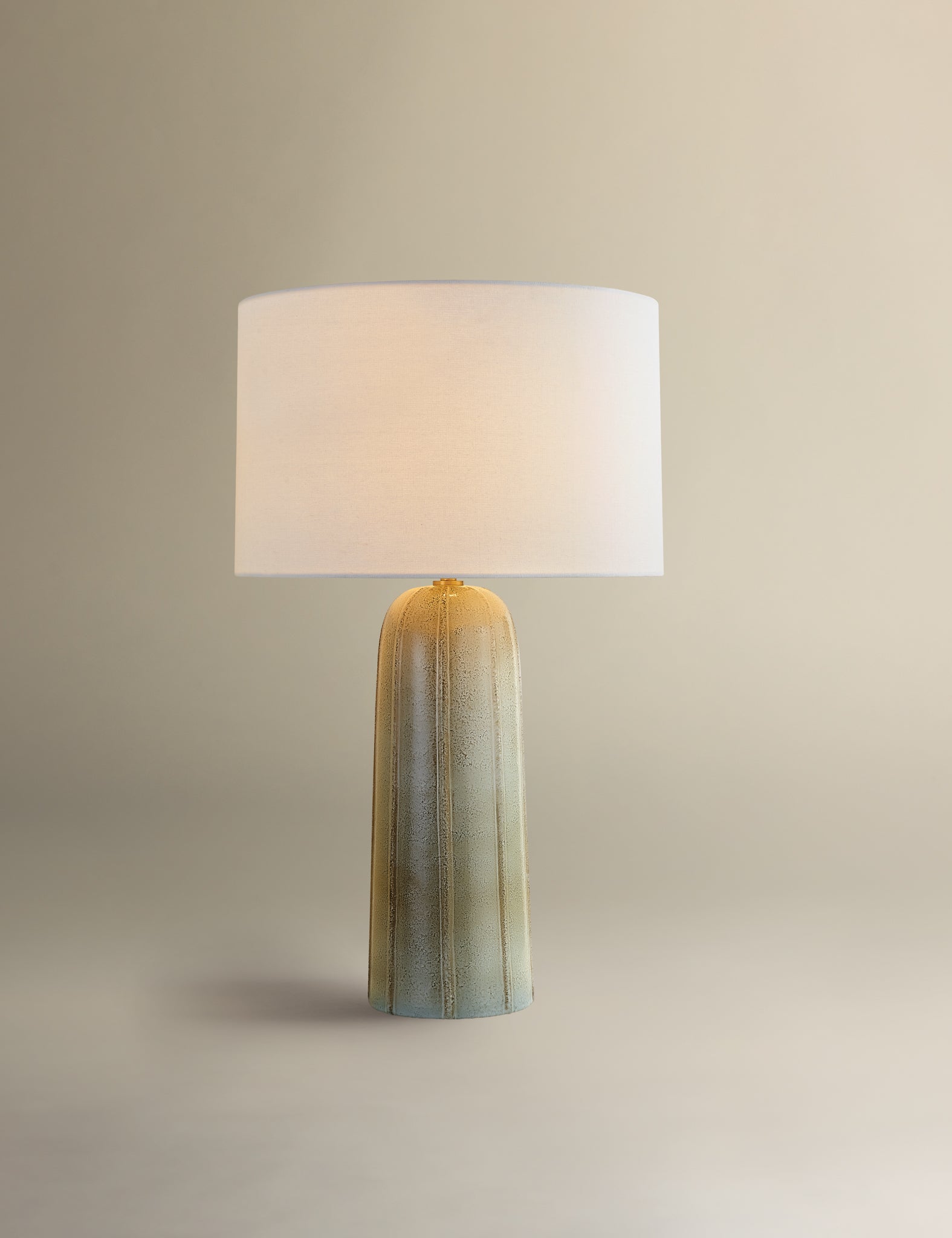 Celebrating the beauty of nature, this table lamp blends rustic and refined elements. Recalling a sandstorm, the Reactive Ash Ceramic body has a raw, textural pattern. In contrast, the white linen shade floats like a delicate cloud. A glimmer of Aged Brass at the neck adds a flawless finish. Part of THELIFESTYLEDCO® collection.