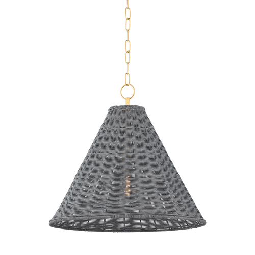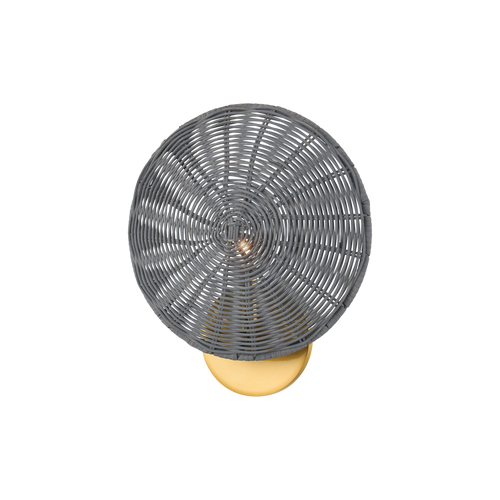Combining the beauty of natural wicker and polished Aged Brass, this coastal-inspired fixture exudes understated elegance. When illuminated, the golden-hued brass gleams through the gray wicker, creating a warm and earthy glow. Available as a sconce, pendant, or floor lamp. Part of THELIFESTYLEDCO® collection.