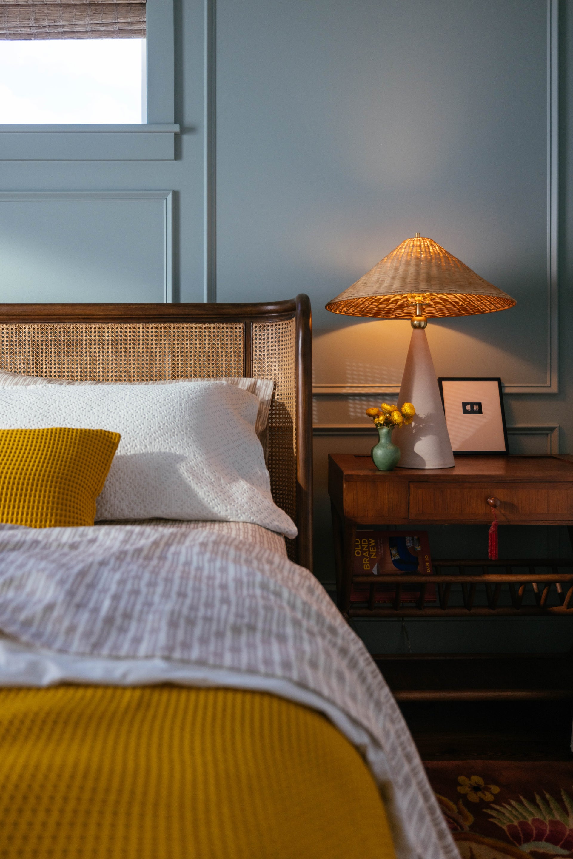 Playing with shapes, texture, and light, Perilla creates modern geometries from a surprising mixture of materials. The elongated frame supports stacked forms that culminate in a textural wicker rattan shade. Decorative sphere details add an artisanal touch to the design. Perilla is available as a pendant, table lamp, or wall sconce in two finishes, Aged Brass and Old Bronze. Part of our Dabito x Mitzi Tastemakers collection.