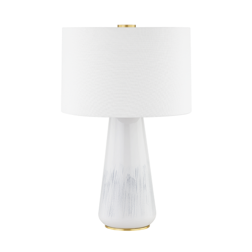 Featuring a pyramid-shaped base of honed Arabescato Corchia marble, the Benicia table lamp stands with a statuesque presence. Evoking a sense of permanence, the polished stone contrasts with the soft white linen of the shade. A slender Aged Brass neck adds the finishing touch � a contemporary update to a timeless beauty.