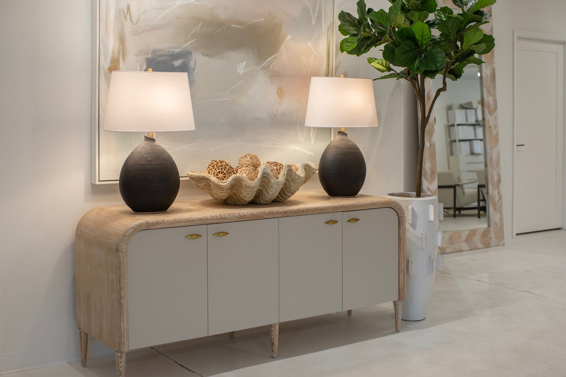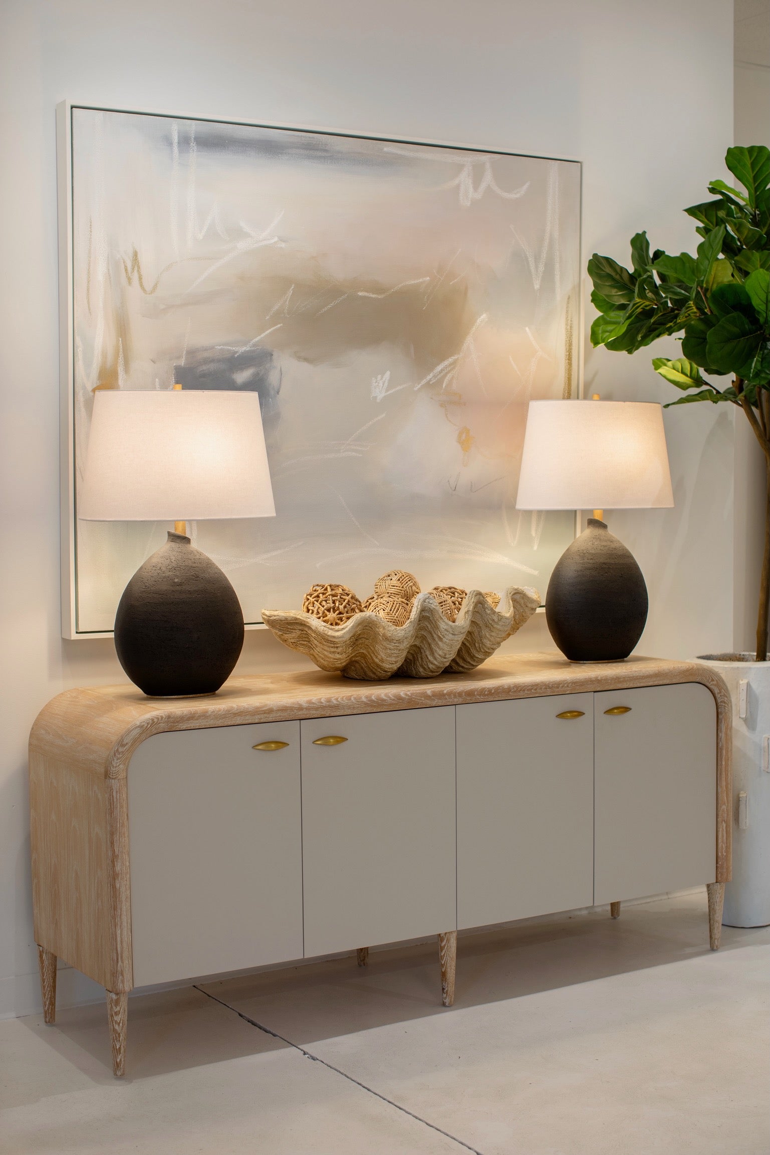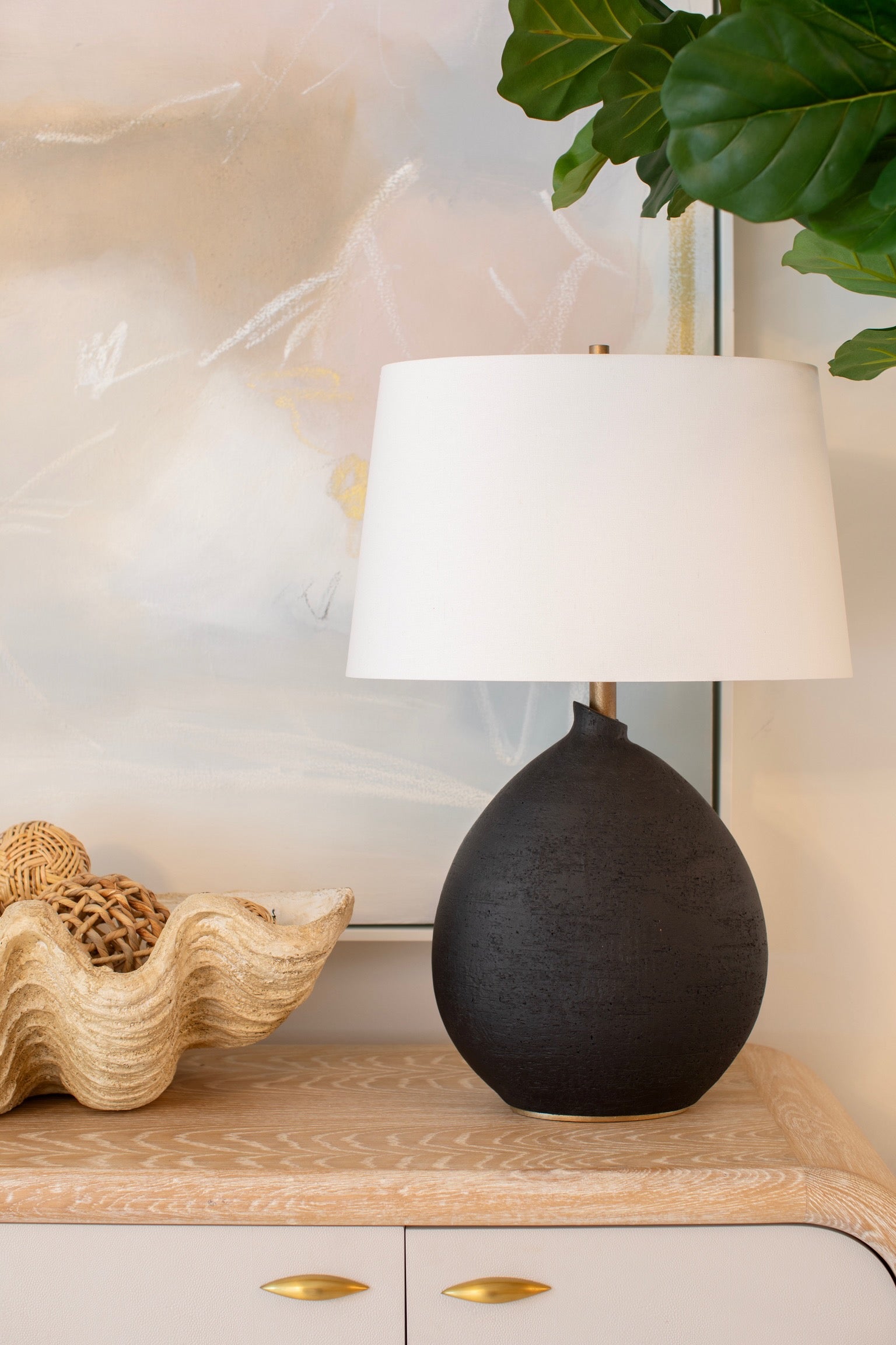 Reminiscent of a hand-sculpted vase, Denali combines an earthy feel with a subtle sophistication. Gold Leaf accents give the fixture a touch of shine and the asymmetrical line at the top of its smooth teardrop shape adds a sense of calm and visual interest. The soft Belgian linen shade is the perfect complement to the richly textured Ceramic body. Just 4 ½" wide at the base, Denali makes a big impact but leaves a small footprint. Choose from White, Gray or Dusk Black finishes to bring an organic beauty to any space.