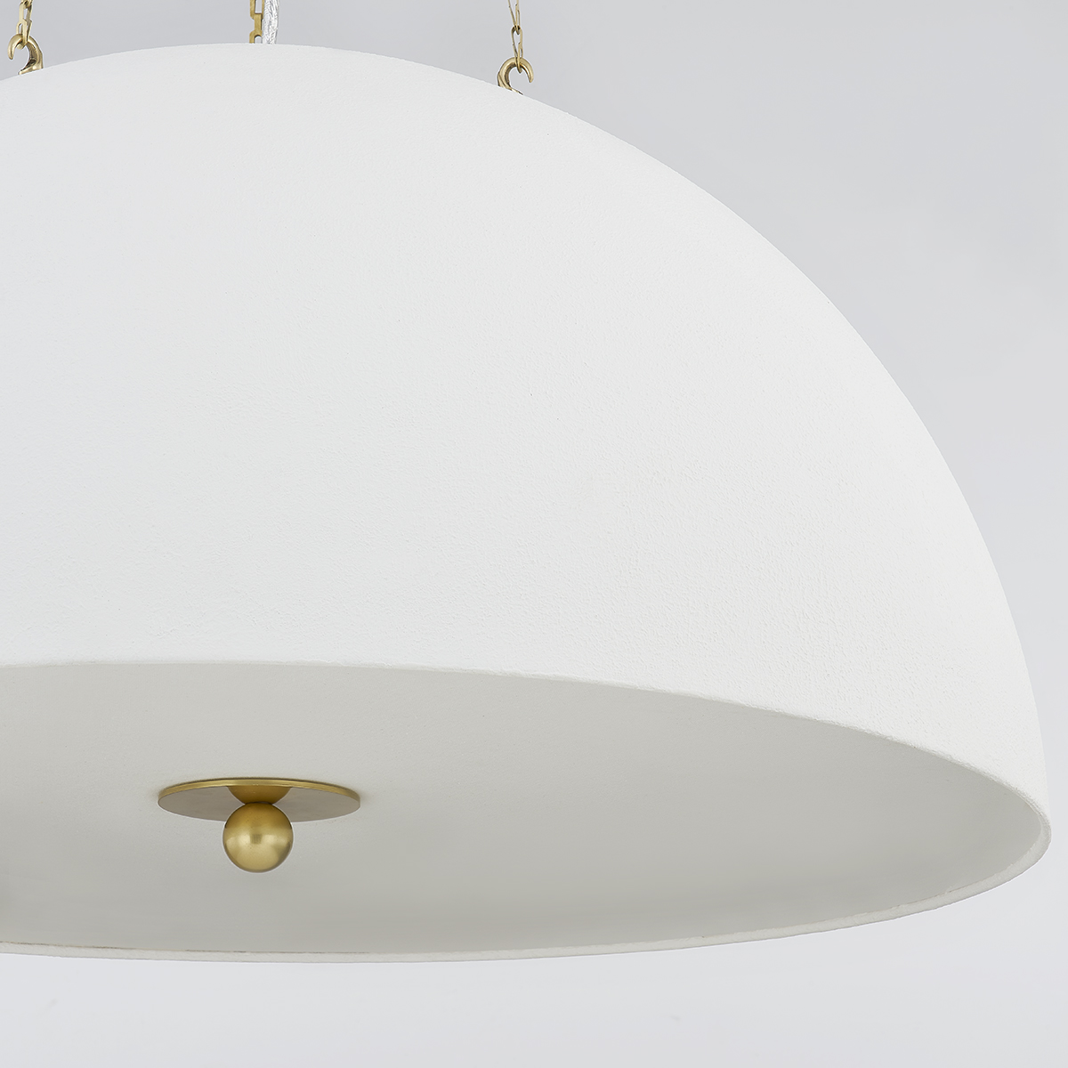 Clean and streamlined, Chiswick features a classic-chic White Plaster dome shade. The petite chain and metal finial detail feel jewelry-like and give this modern three or four light pendant an elevated, elegant vibe. Part of our Mark D. Sikes collection.