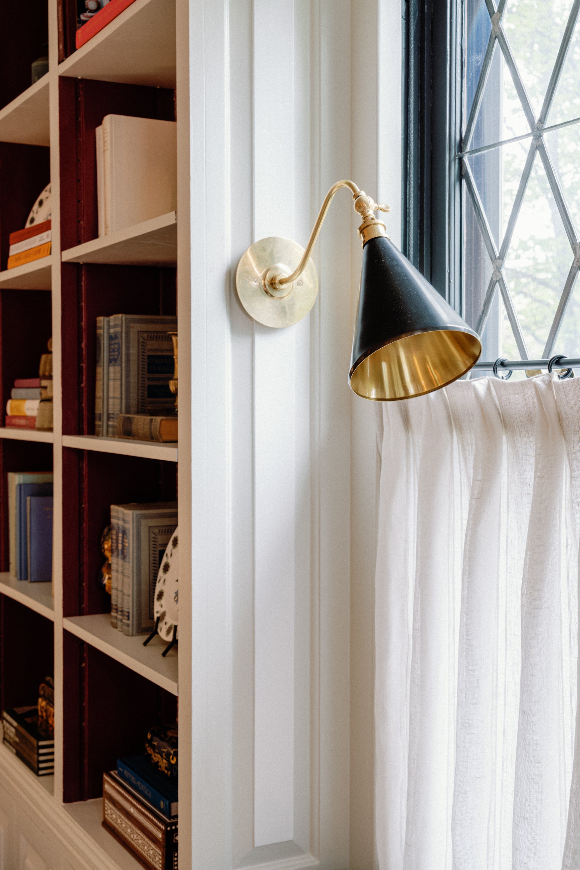 Osterley's simple, yet striking cone silhouette makes it both elegant and useable. The shade's Aged Brass inside contrasts beautifully with the Distressed Bronze outside. Hang the pendant in multiples over kitchen islands, dining tables and down hallways, or use alone to light a smaller space. Both sconces articulate making them ideal bedside or in a cozy reading nook. Part of our Mark D. Sikes collection.