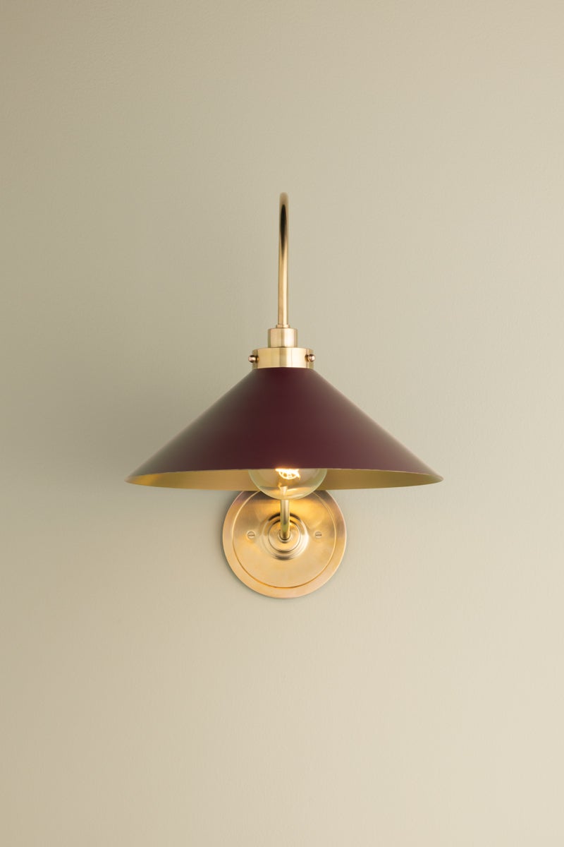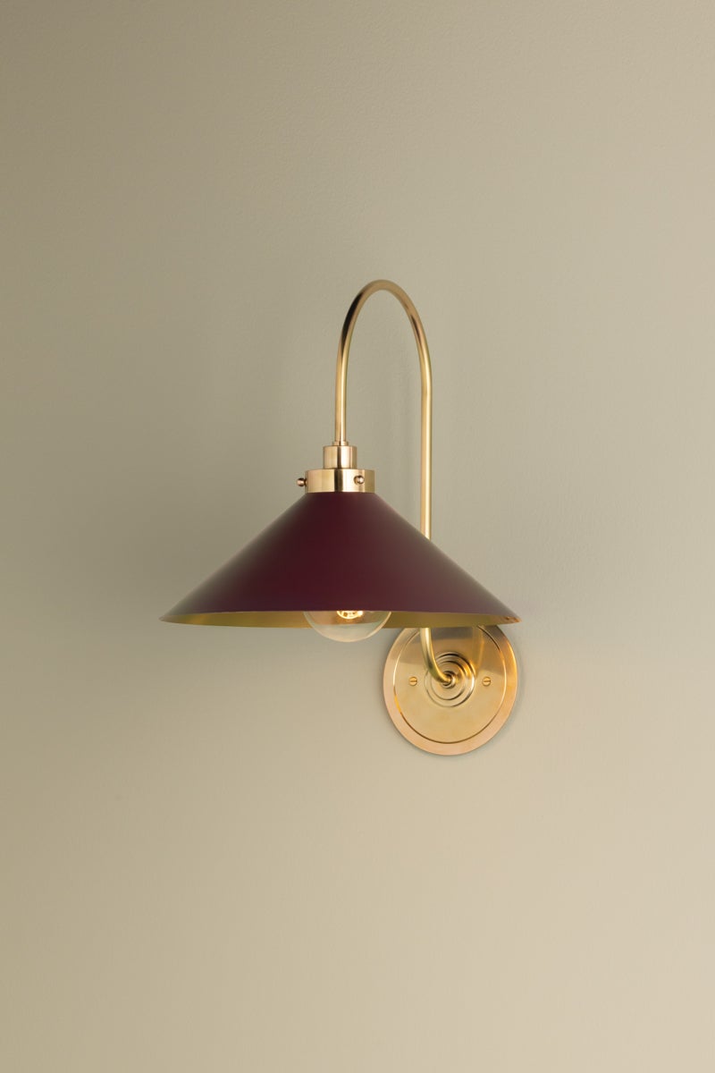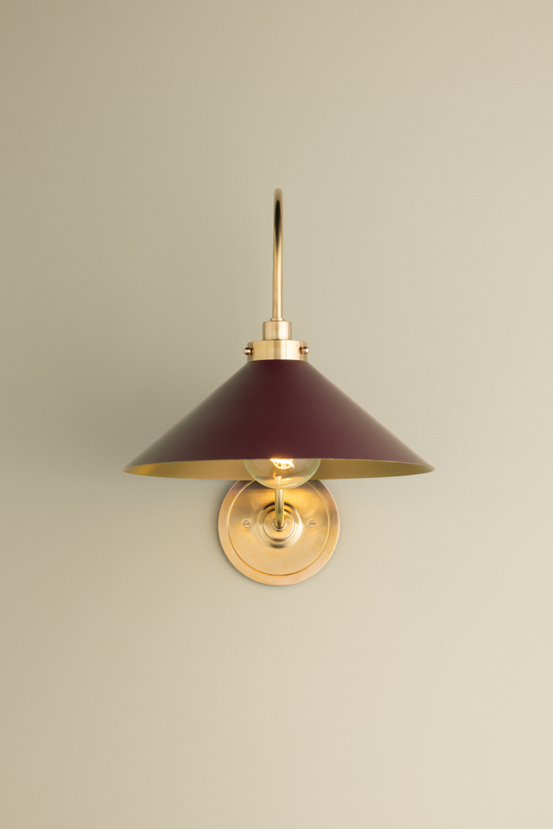 This classic metal shade design feels special with fresh finish combinations and sleek, heritage-inspired details. The contrastiing Aged Brass accents and modern gooseneck arm allow the pendants and sconce an updated, yet classic feel. The tapered shade over a five-light candelabra give the chandelier new traditional appeal. Each fixture features an Aged Brass or Polished Nickel shade that is metal on the inside and painted Off-White, Distressed Bronze or Bird Blue on the outside. Part of our Mark D. Sikes collection.