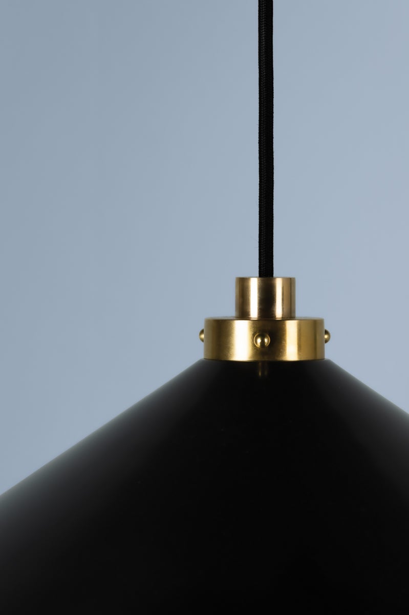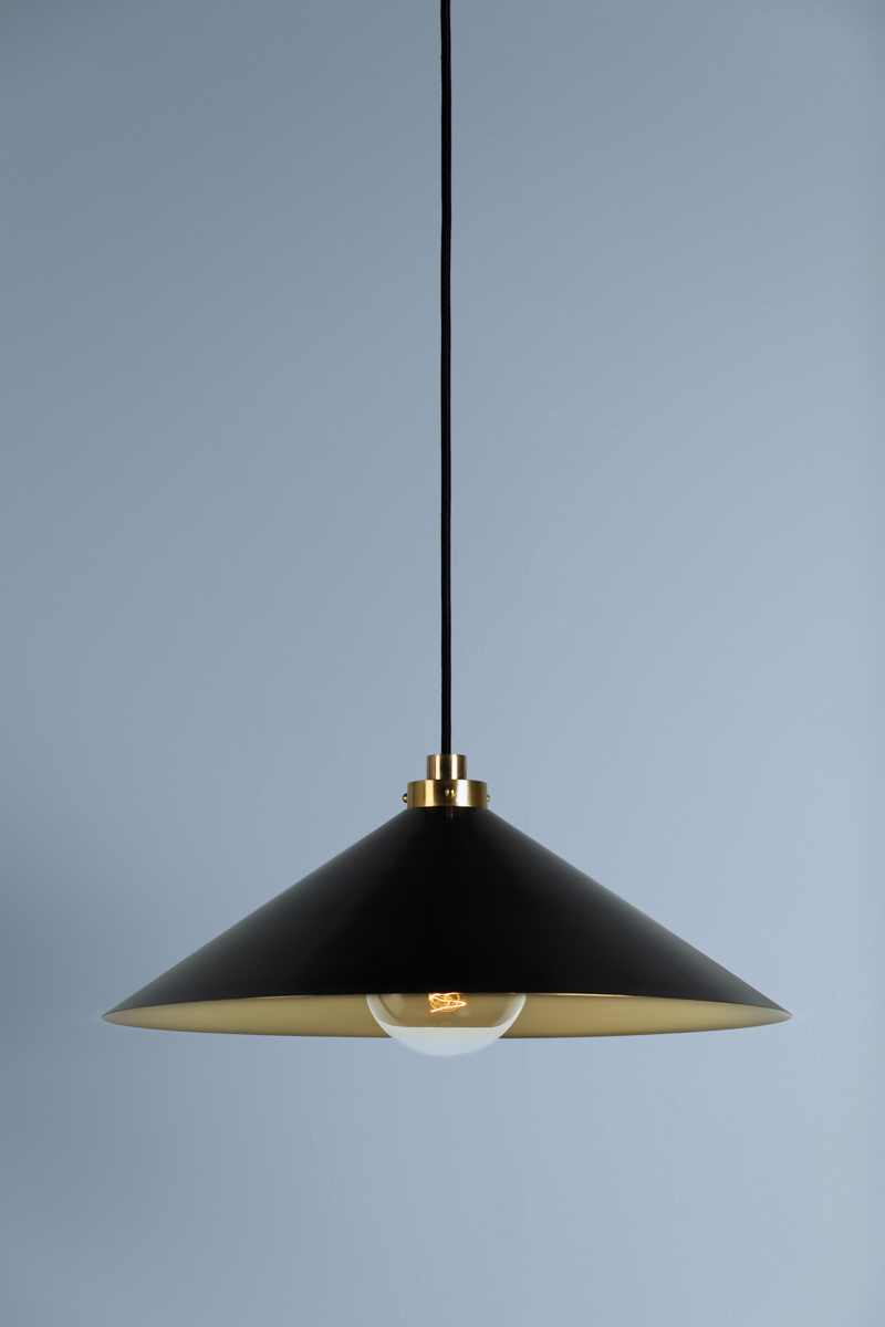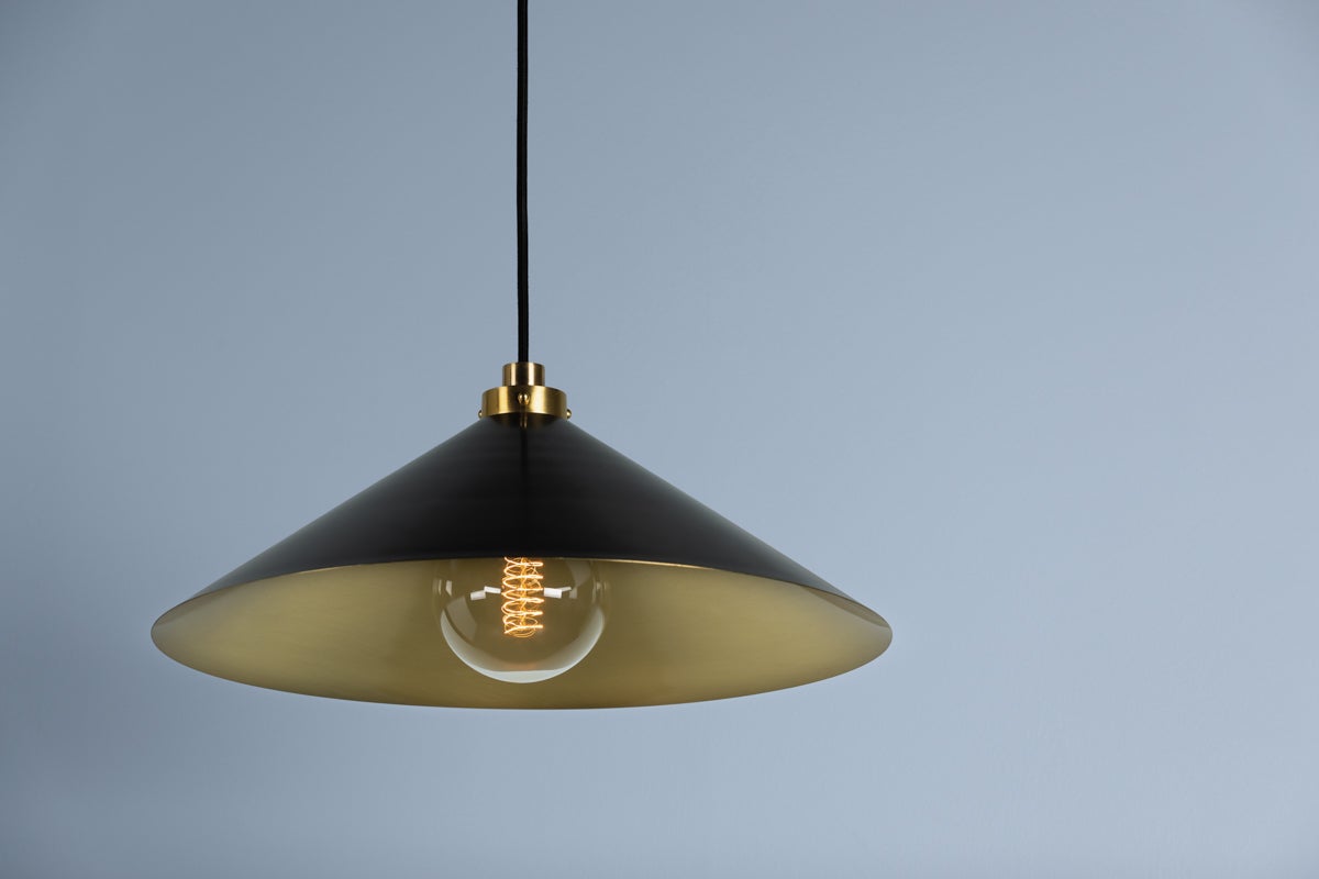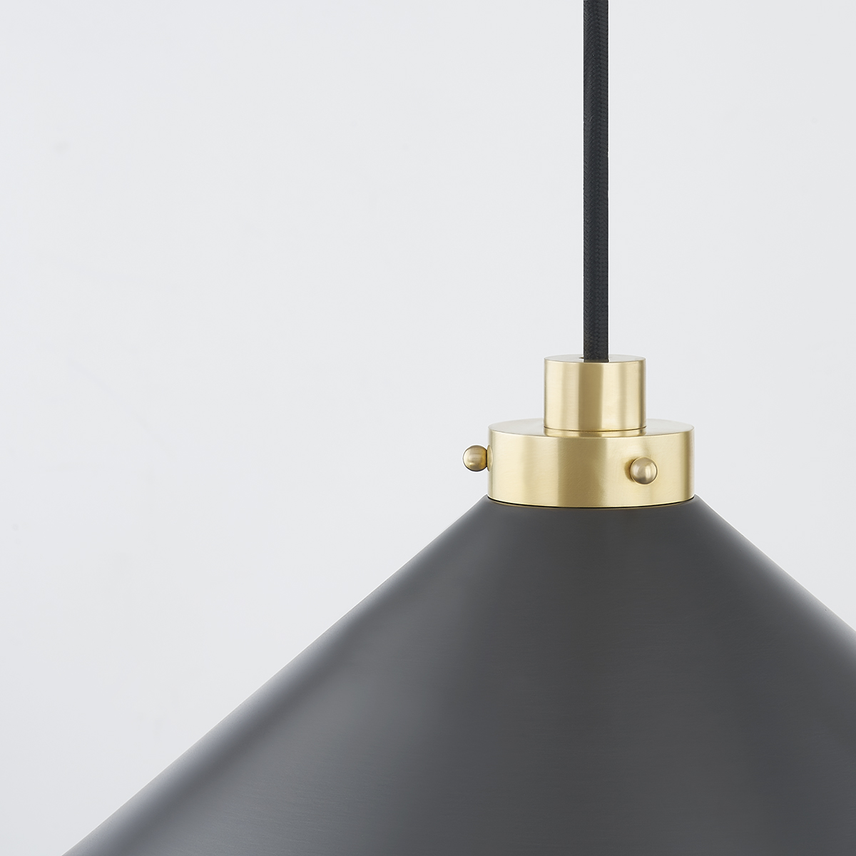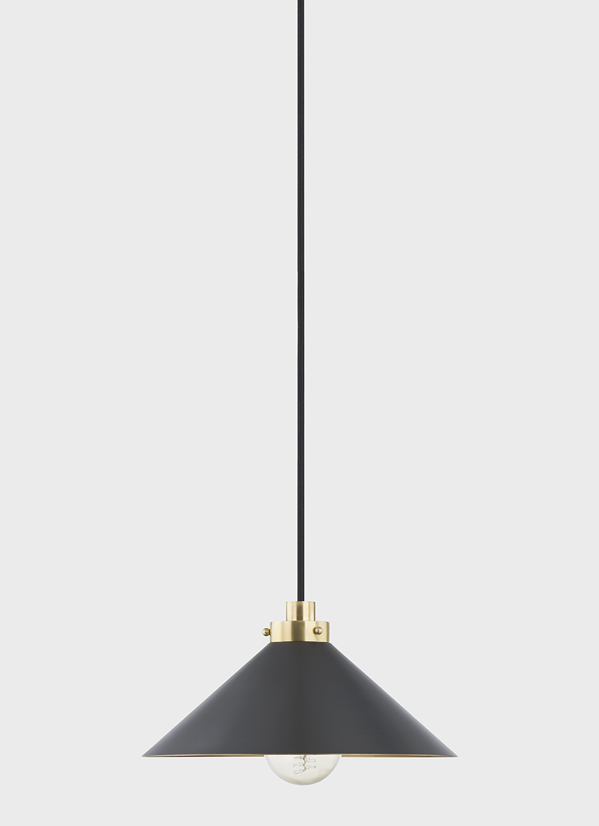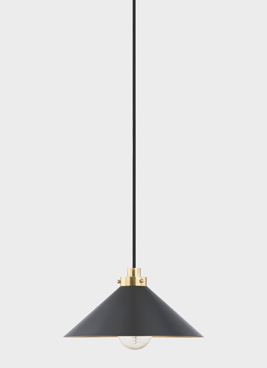 This classic metal shade design feels special with fresh finish combinations and sleek, heritage-inspired details. The contrastiing Aged Brass accents and modern gooseneck arm allow the pendants and sconce an updated, yet classic feel. The tapered shade over a five-light candelabra give the chandelier new traditional appeal. Each fixture features an Aged Brass or Polished Nickel shade that is metal on the inside and painted Off-White, Distressed Bronze or Bird Blue on the outside. Part of our Mark D. Sikes collection.