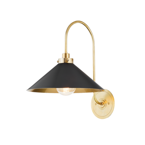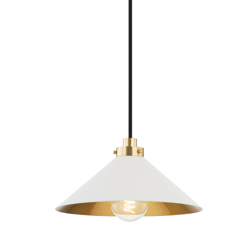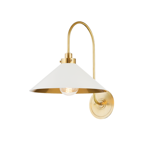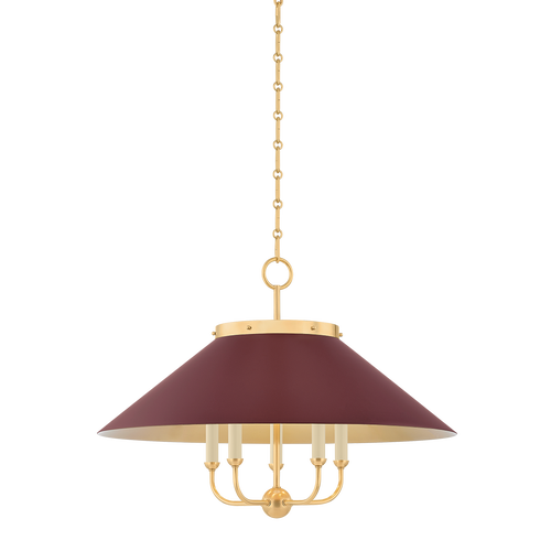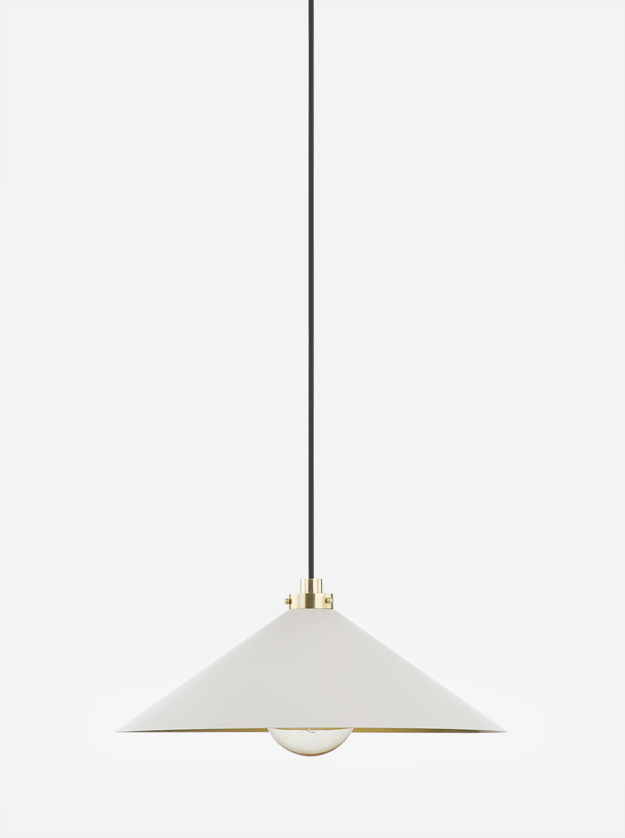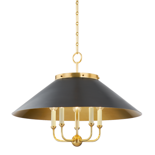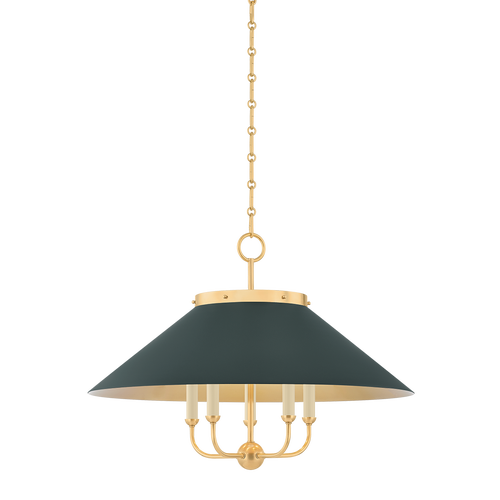 This classic metal shade design feels special with fresh finish combinations and sleek, heritage-inspired details. The contrastiing Aged Brass accents and modern gooseneck arm allow the pendants and sconce an updated, yet classic feel. The tapered shade over a five-light candelabra give the chandelier new traditional appeal. Each fixture features an Aged Brass or Polished Nickel shade that is metal on the inside and painted Off-White, Distressed Bronze or Bird Blue on the outside. Part of our Mark D. Sikes collection.