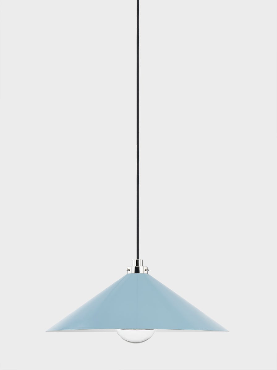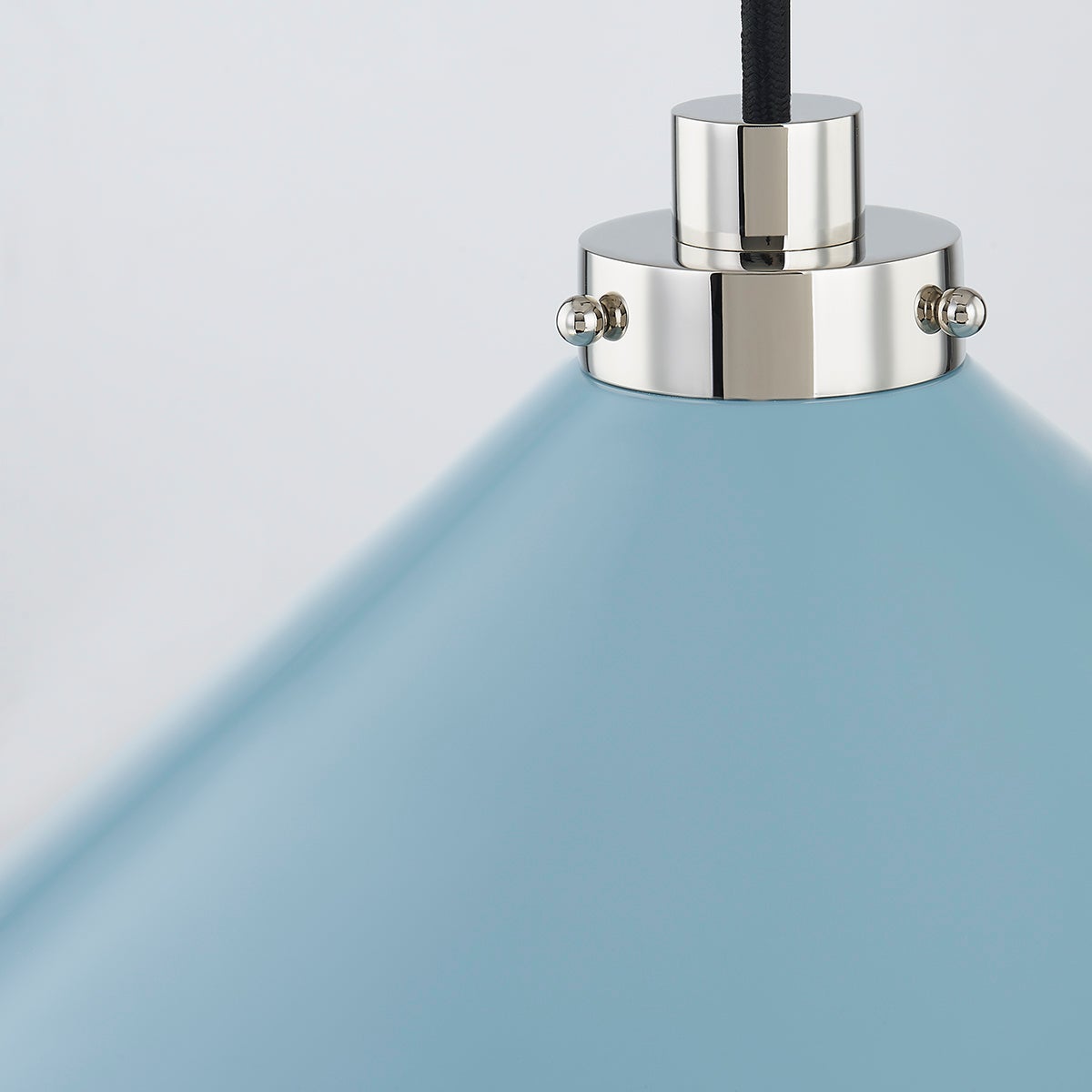 This classic metal shade design feels special with fresh finish combinations and sleek, heritage-inspired details. The contrastiing Aged Brass accents and modern gooseneck arm allow the pendants and sconce an updated, yet classic feel. The tapered shade over a five-light candelabra give the chandelier new traditional appeal. Each fixture features an Aged Brass or Polished Nickel shade that is metal on the inside and painted Off-White, Distressed Bronze or Bird Blue on the outside. Part of our Mark D. Sikes collection.