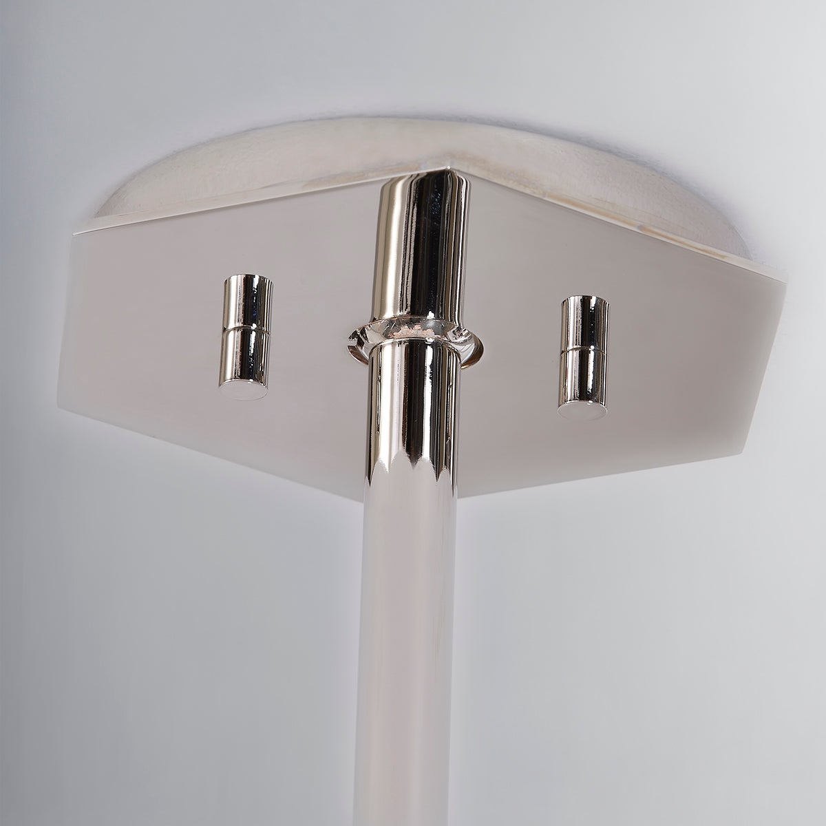 Tring's whimsical shade shape draws the eye and sparks the imagination. Gem-like, asymmetrical opal matte glass shades extend from sleek geometric metal work, creating stunning bursts of light when lit. A multifaceted work of art, Tring is available as a 4-light wall sconce, 1-light flush mount, or 13-light chandelier in Aged Brass or Polished Nickel.