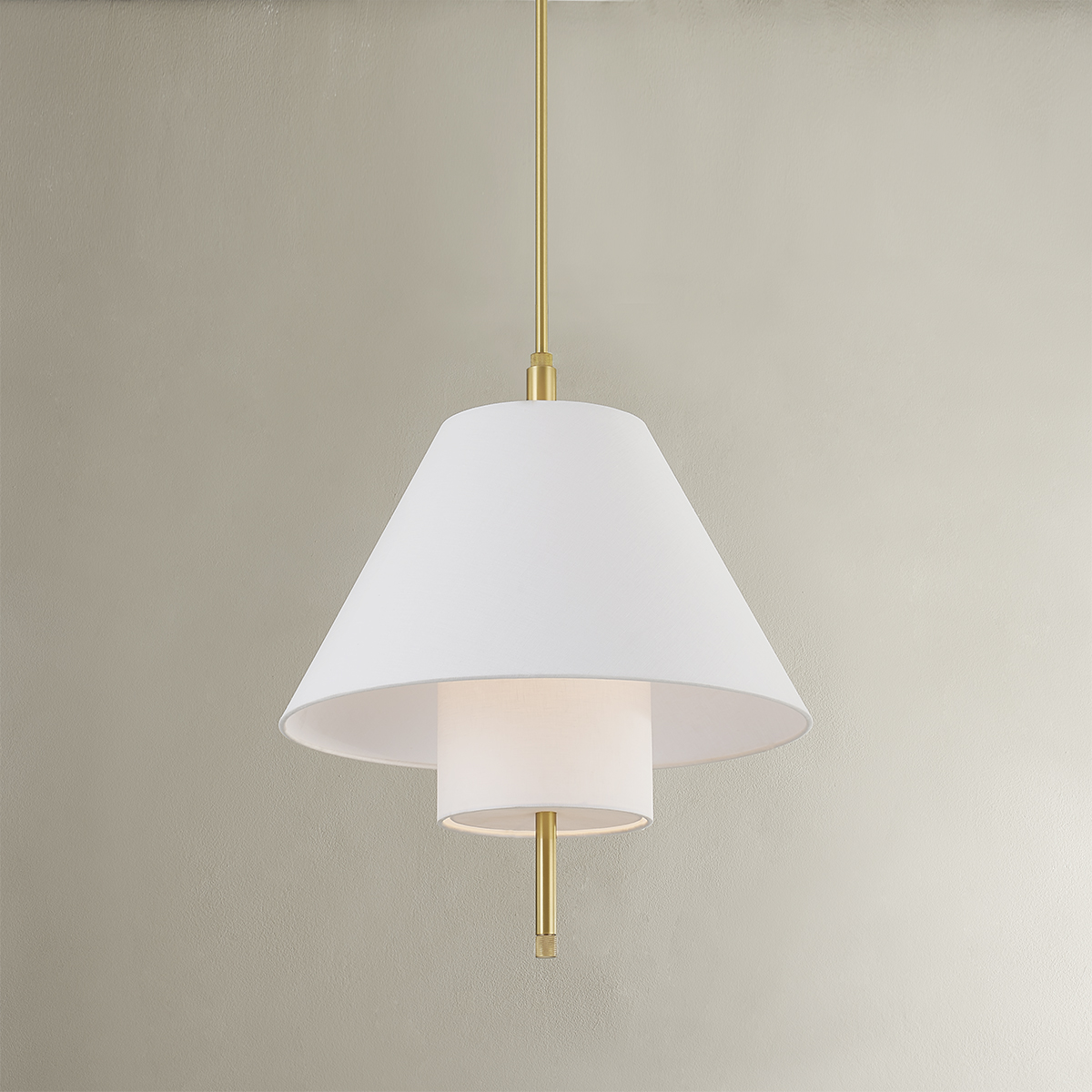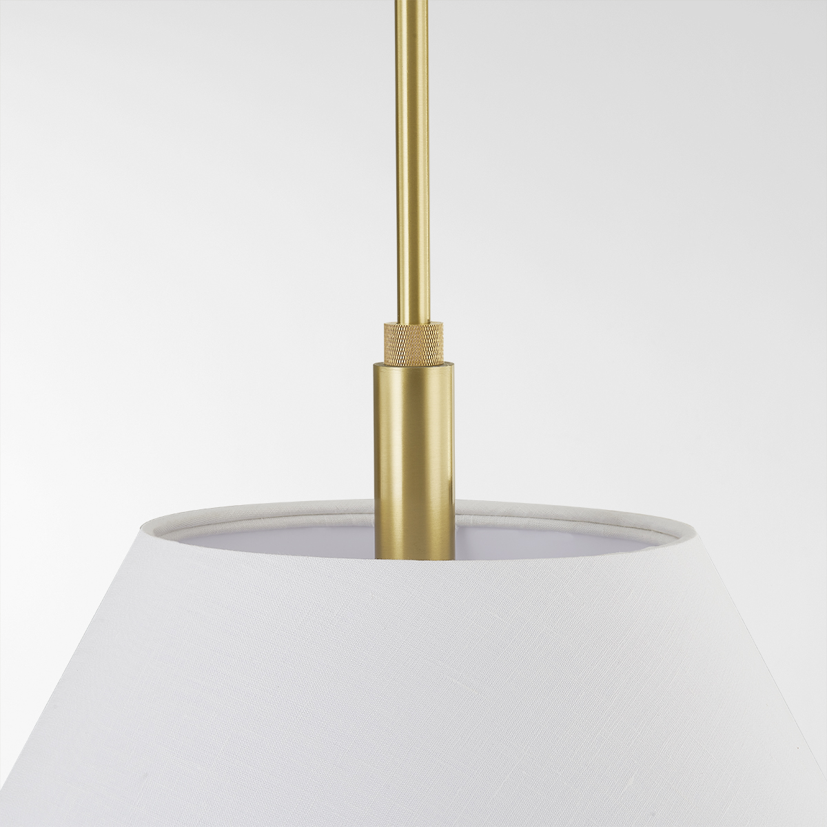 Glenmoore gives the classic shade on a stick a chic modern update. A sleek metal arm is the base for a tapered white linen shade with an elongated cylindrical shade set inside. This uniquely tailored detail extends light downward for a soft glow. Knurled accents add a touch of sophistication to this already refined design, available as a wall sconce, pendant, chandelier, and floor lamp in two elegant finishes.