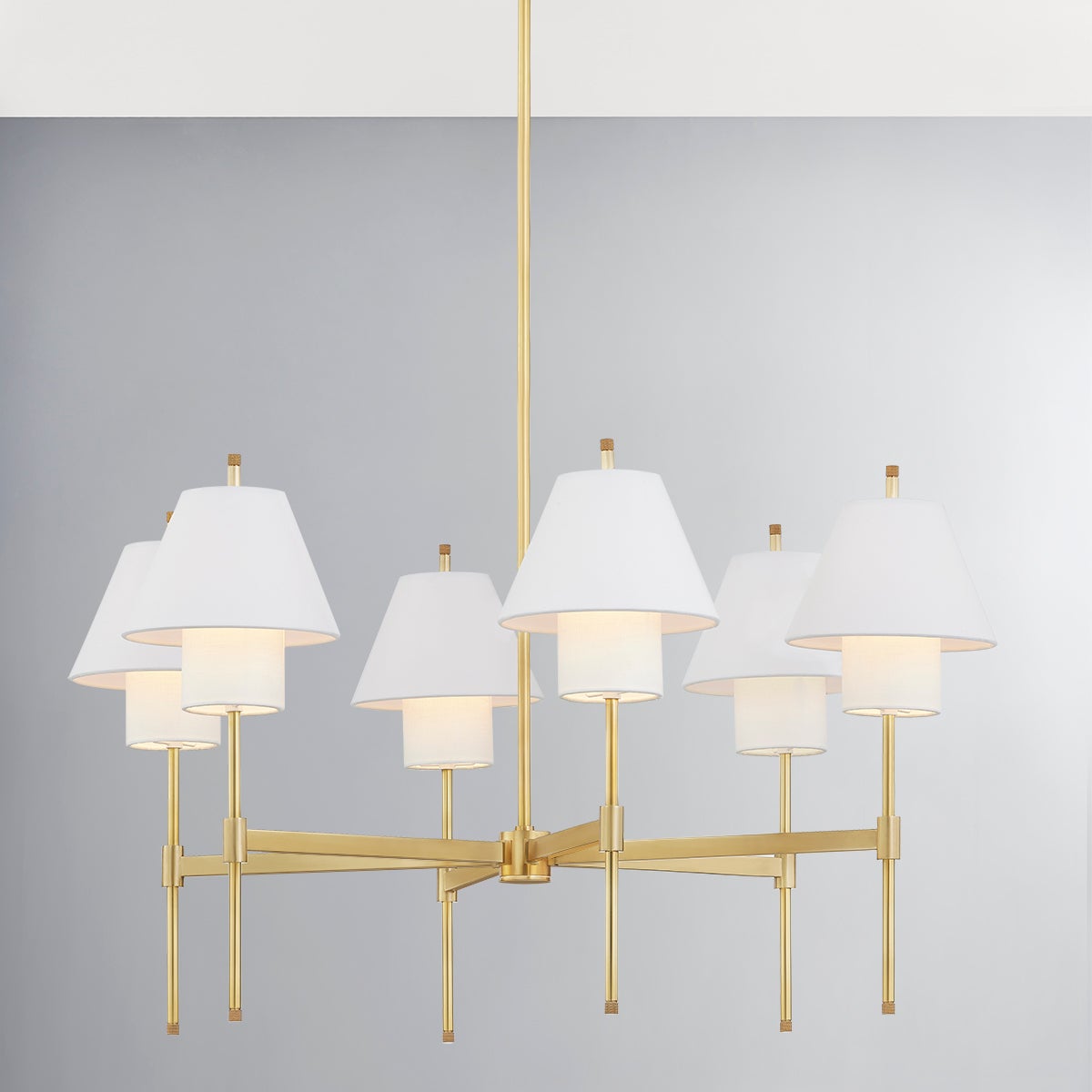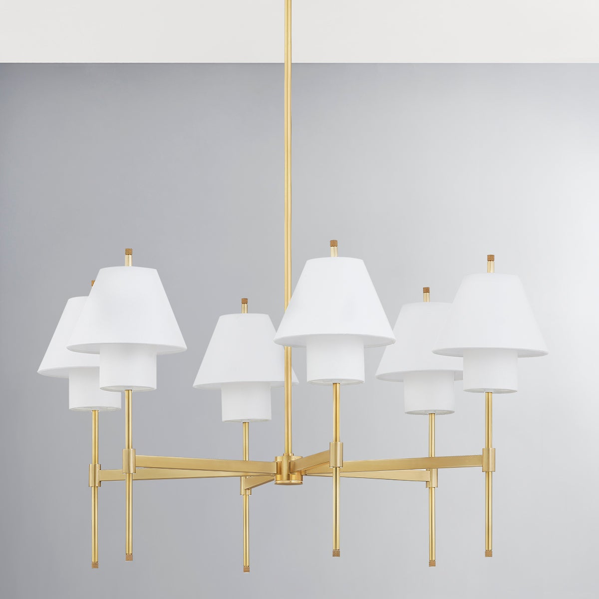 Glenmoore gives the classic shade on a stick a chic modern update. A sleek metal arm is the base for a tapered white linen shade with an elongated cylindrical shade set inside. This uniquely tailored detail extends light downward for a soft glow. Knurled accents add a touch of sophistication to this already refined design, available as a wall sconce, pendant, chandelier, and floor lamp in two elegant finishes.