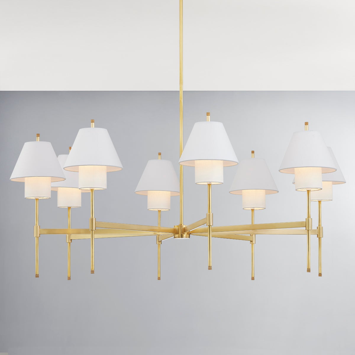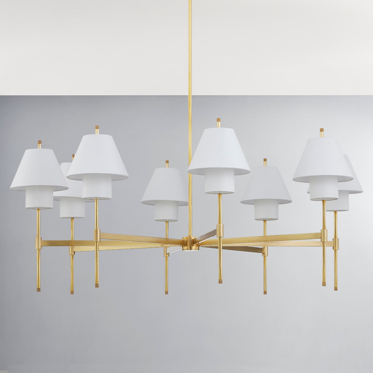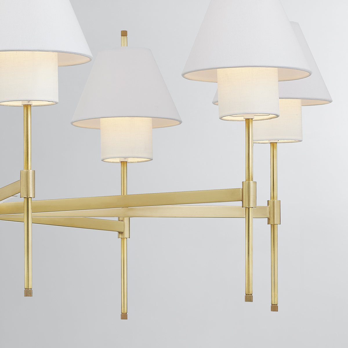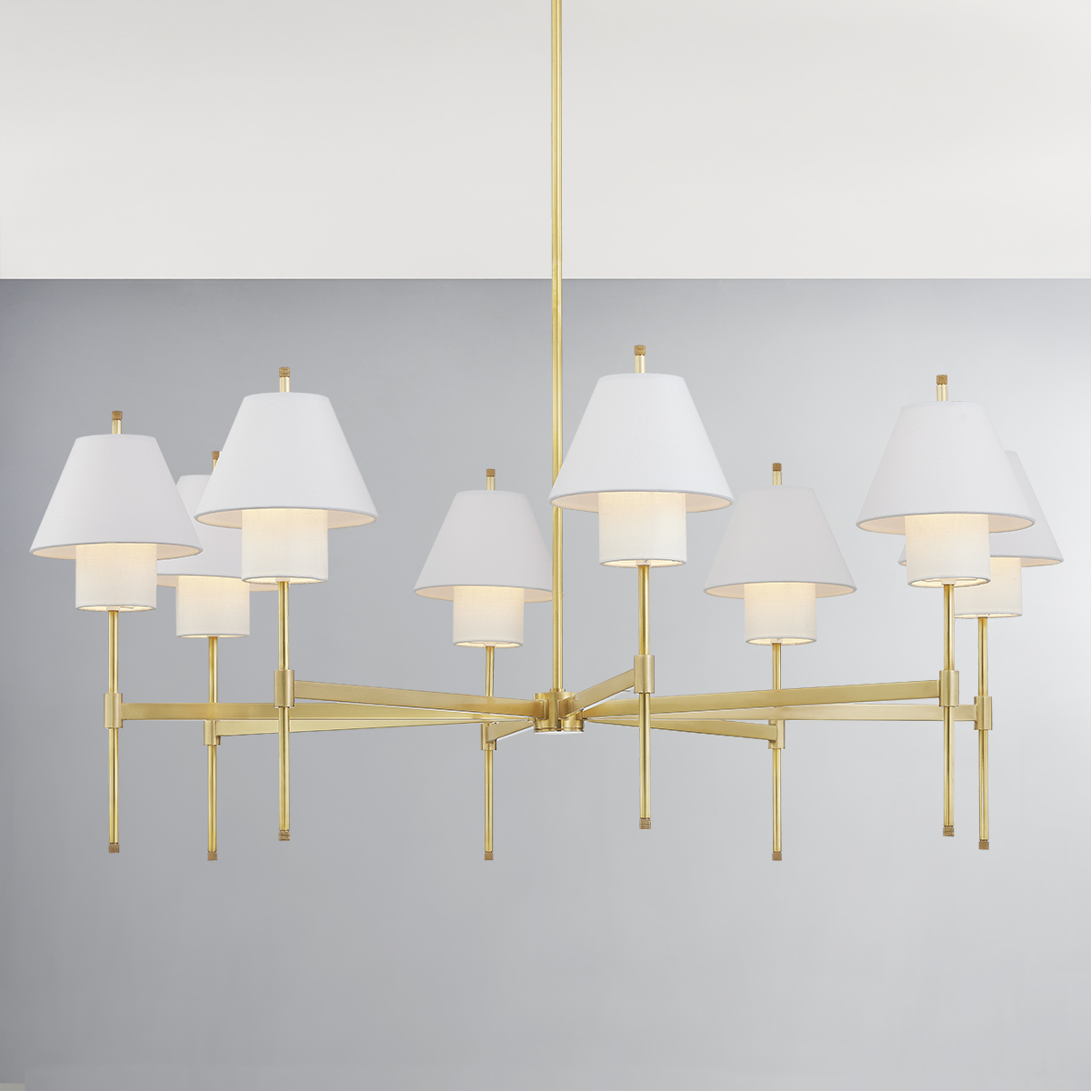 Glenmoore gives the classic shade on a stick a chic modern update. A sleek metal arm is the base for a tapered white linen shade with an elongated cylindrical shade set inside. This uniquely tailored detail extends light downward for a soft glow. Knurled accents add a touch of sophistication to this already refined design, available as a wall sconce, pendant, chandelier, and floor lamp in two elegant finishes.