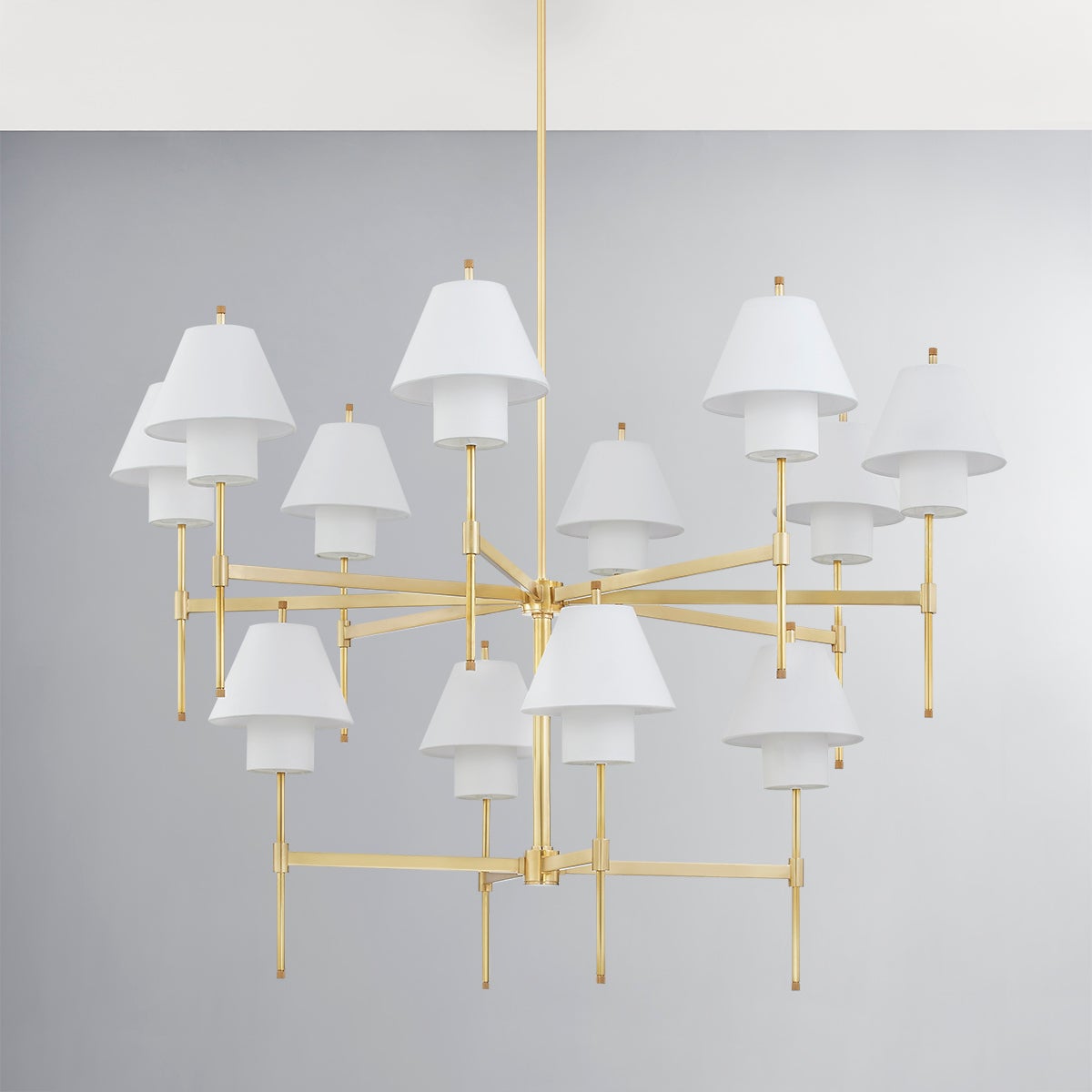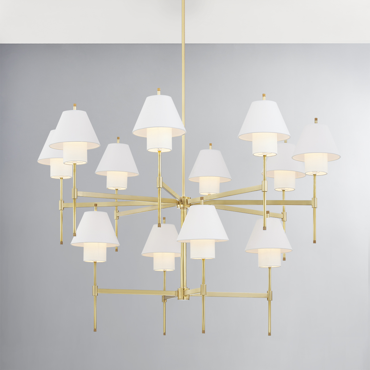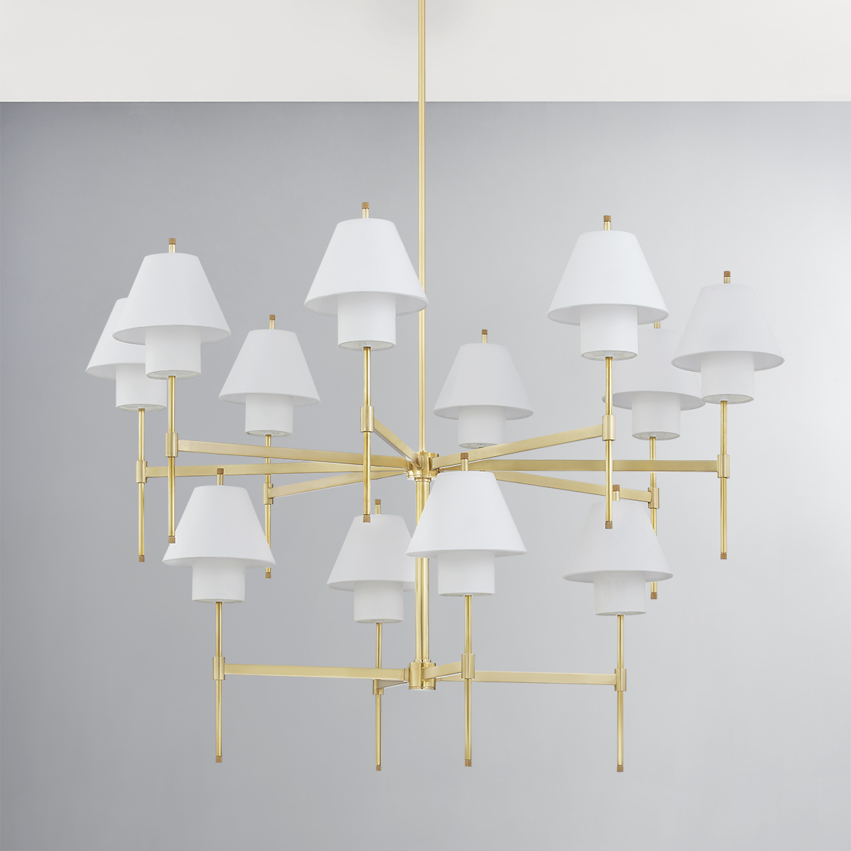 Glenmoore gives the classic shade on a stick a chic modern update. A sleek metal arm is the base for a tapered white linen shade with an elongated cylindrical shade set inside. This uniquely tailored detail extends light downward for a soft glow. Knurled accents add a touch of sophistication to this already refined design, available as a wall sconce, pendant, chandelier, and floor lamp in two elegant finishes.