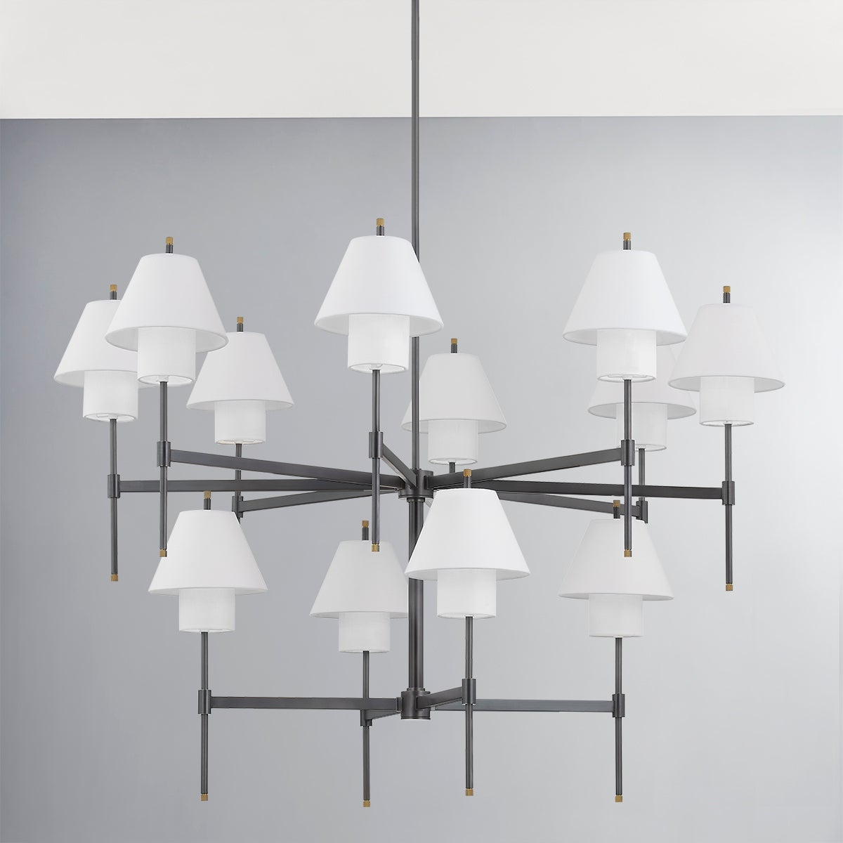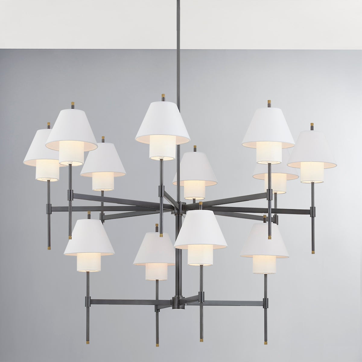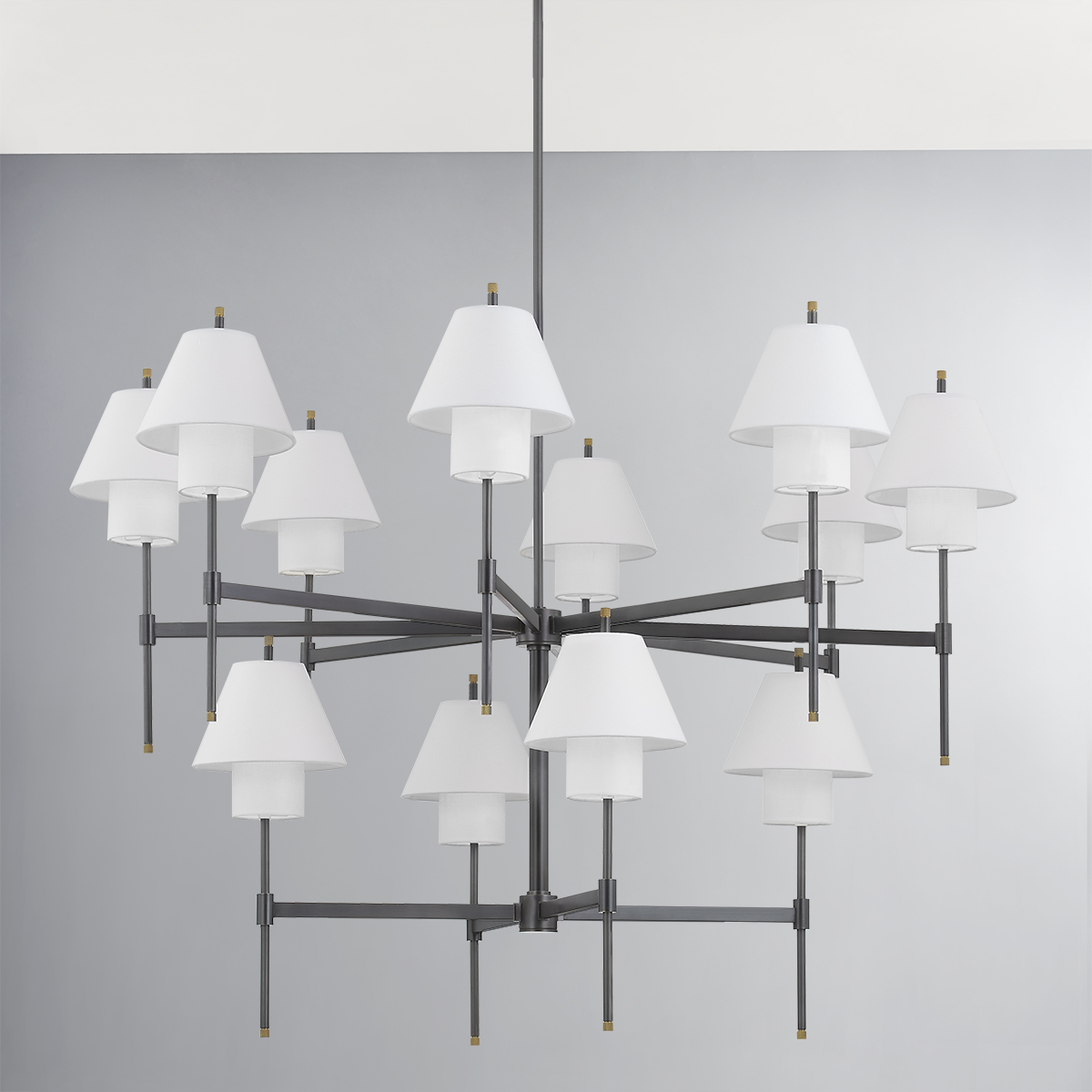 Glenmoore gives the classic shade on a stick a chic modern update. A sleek metal arm is the base for a tapered white linen shade with an elongated cylindrical shade set inside. This uniquely tailored detail extends light downward for a soft glow. Knurled accents add a touch of sophistication to this already refined design, available as a wall sconce, pendant, chandelier, and floor lamp in two elegant finishes.