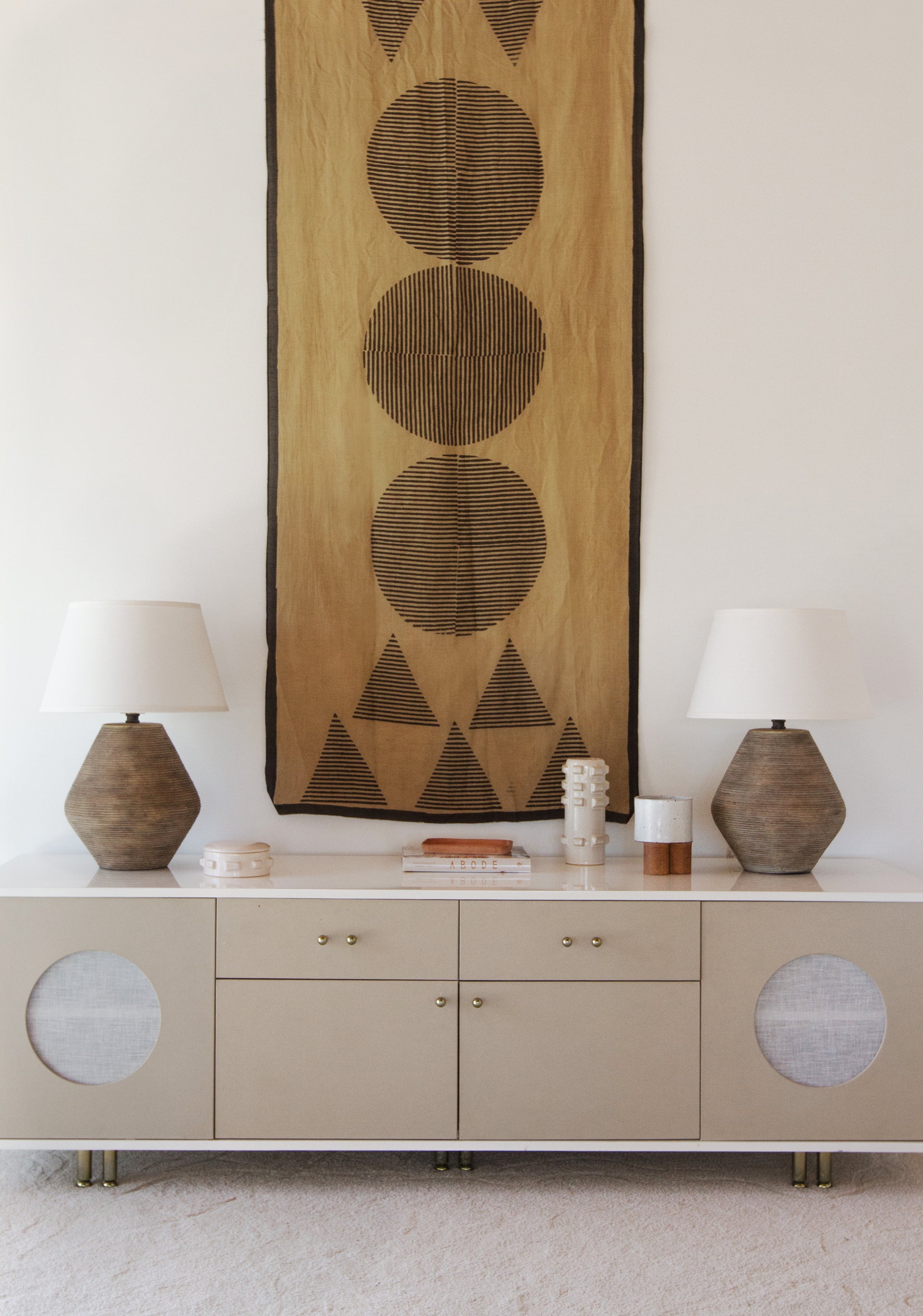 Inspired by the sun-soaked beaches of southern Italy, the Calabria family of table lamps features earthy, textural finishes and curvy silhouettes. The large conical linen shades complement the rustic appearance of these treasures. Layered together, they bring an organic beauty into any space.