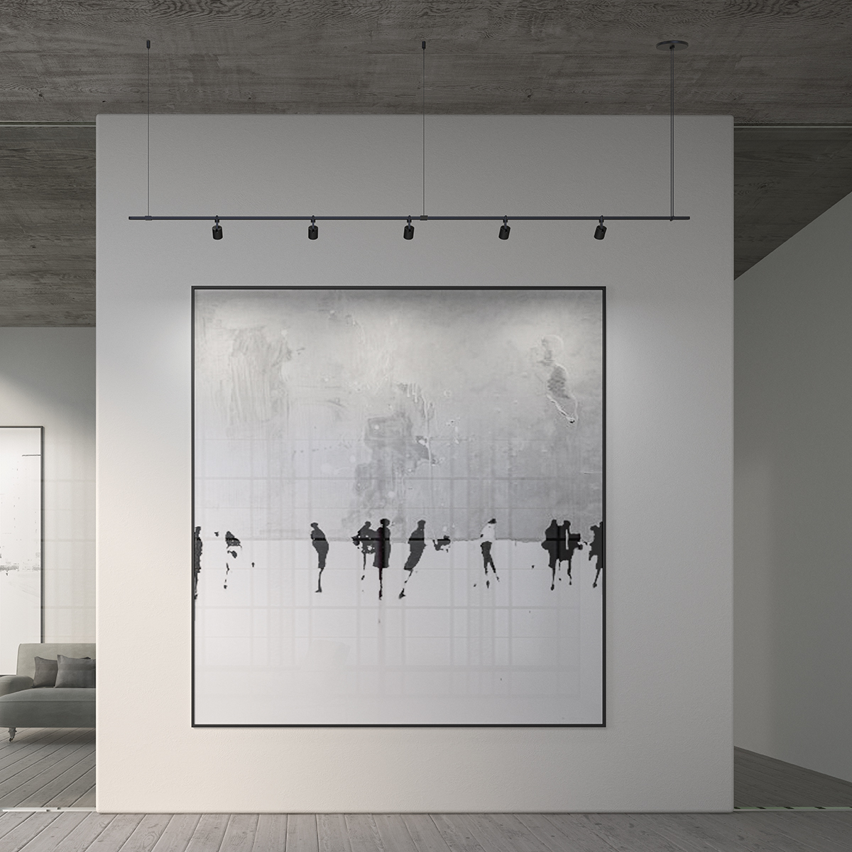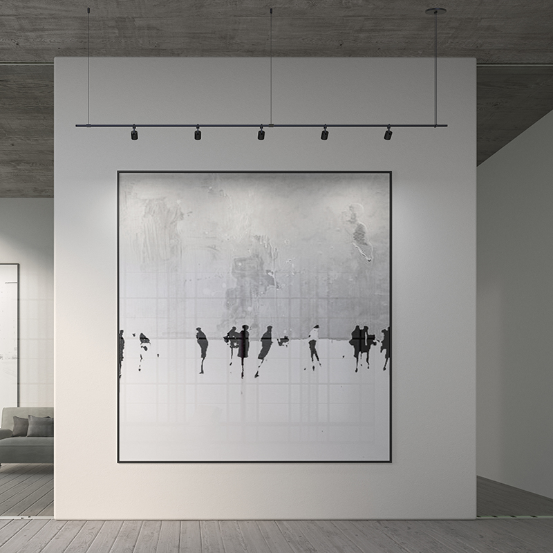 Power bars are suspended at right angles to each other, connected by perpendicular Power Bar Hangers. Zig Zag arrangements can be used to form a linear pattern, or combined and oriented to form a broad composition arrayed across the plane of an entire ceiling.