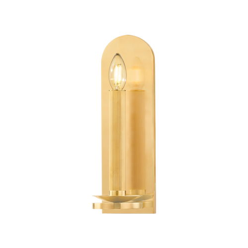 Drawing from 1930s designs, Lindenhurst is a testament to the strength of simplicity. It features an arched Aged Brass backplate mounted with a matching candlelight. The delicate fluting on the candle sleeve enhances the vintage feel of this versatile sconce.