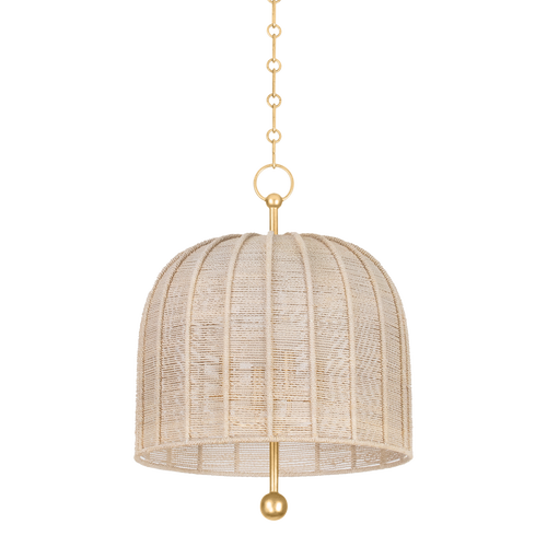 Tipping its cap to designer Hans-Agne Jakobsson, Lonnie rethinks the materiality of his classic umbrella-shaped shade. In this interpretation, the frame of the shade is wrapped in Bleached Abaca rope, allowing light to pass through. As a design detail, the Vintage Gold Leaf stem suspending the shade appears to pierce through the entire fixture, finishing in a decorative sphere. Lonnie is available in two sizes with 3 or 4 lights.