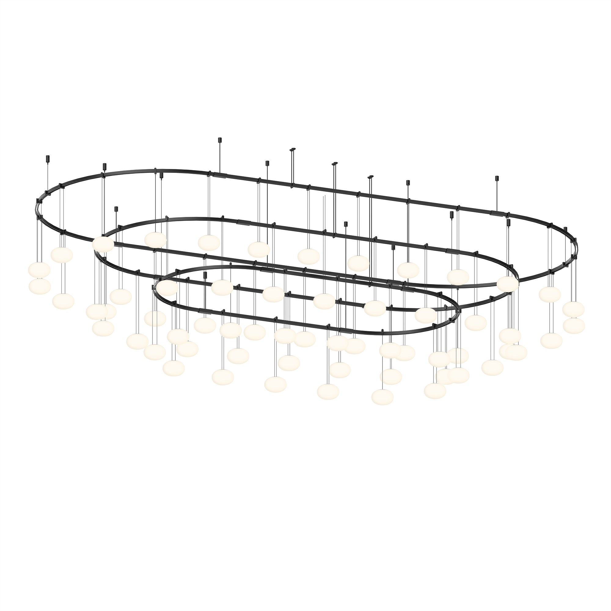 SLS4238-K | 3-Bar Racetrack (40" x 88") | Black (K) | Height Adjustable Etched Globe Luminaires |